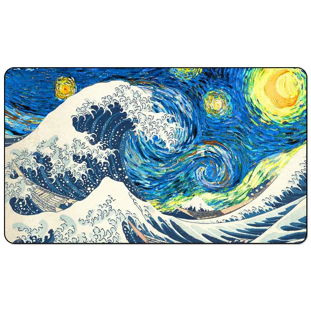 Волшебный игровой коврик для карточных игр: комбинированный Звездная ночь с большой волной в канагаве, размер 60x35 см (24x14 дюймов)