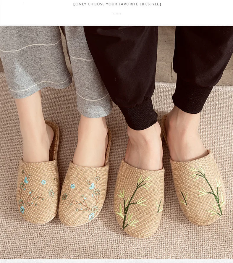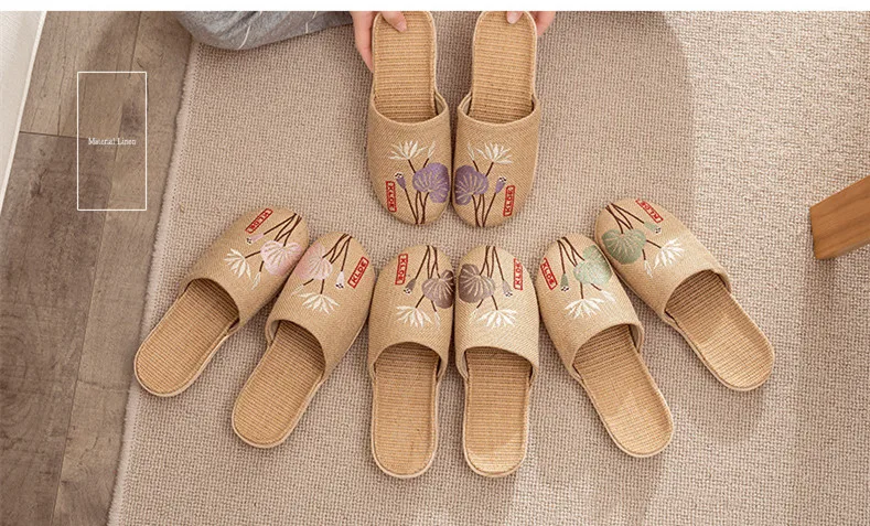 Suihyungлетние тапочки льняные женские и мужские повседневные льняные шлепанцы; Разноцветные Нескользящие домашние вьетнамки из ЭВА; Домашняя обувь; Женские сандалии