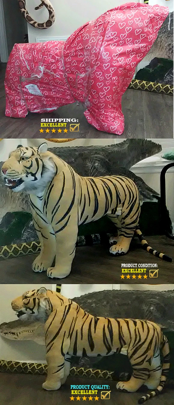 Лучший плюш в мире. Если бы я мог дать продавцу и продукт 10 звезд, я бы хотел! Прибыло безупречно. Просто великолепная большая кошка. Первая вещь для моей выставки «большая кошка». Вполне достойная имитация. Первоклассный дизайн и сборка. Доставка через почту Китая, затем в USPS занимает некоторое время-с отслеживанием логистики иногда немного скидка-но больше, чем стоит ждать! Продавец всегда проходит. Даже с вещами лучше, чем указано или ожидалось. Отличные деловые люди! Я снова в магазине и, без сомнения, буду снова. См. pix. Весы можно увидеть против полноразмерного американского выреза из аллигатора «стэнди». Этот тигр хорошего размера: достаточно большой, чтобы произвести впечатление на рост, но не слишком большой, чтобы быть непрактичным. Взрослые, как я, имеют эти плюши по хорошей причине: они лучшие из своего типа по всему миру и по более чем справедливым ценам!