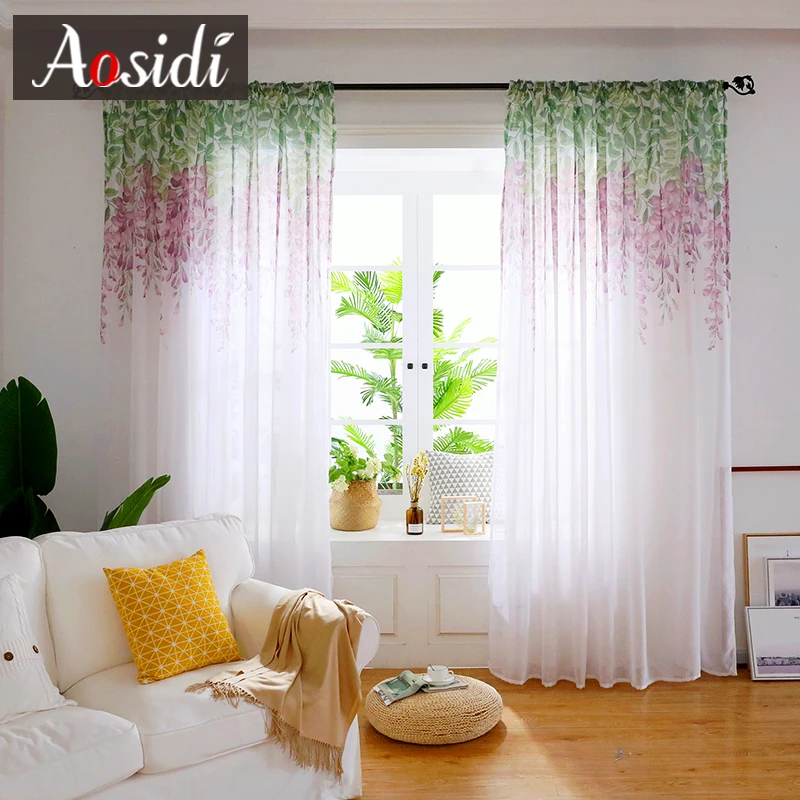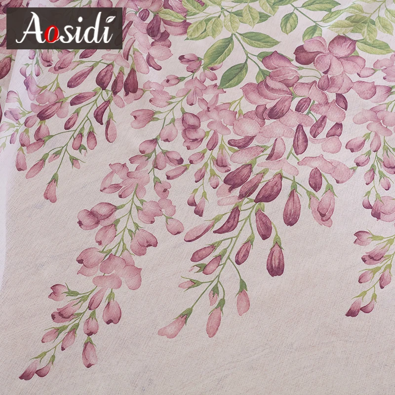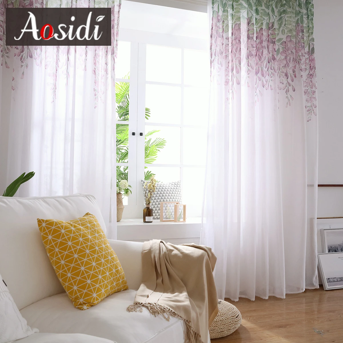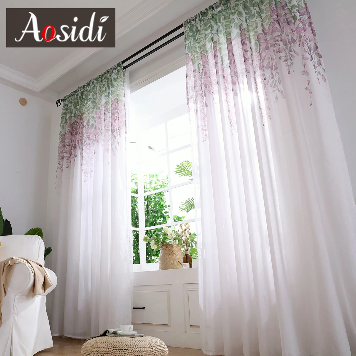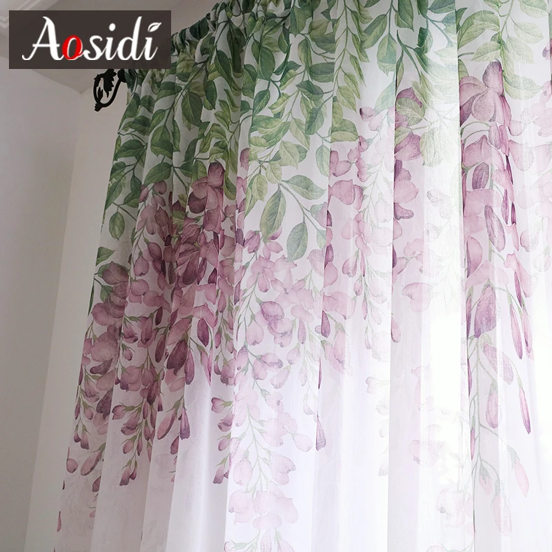 Занавески AOSIDI из тонкой ткани, с изображением цветов глицинии, для гостиной, спальни, светопроницаемые, современные тюлевые шторы