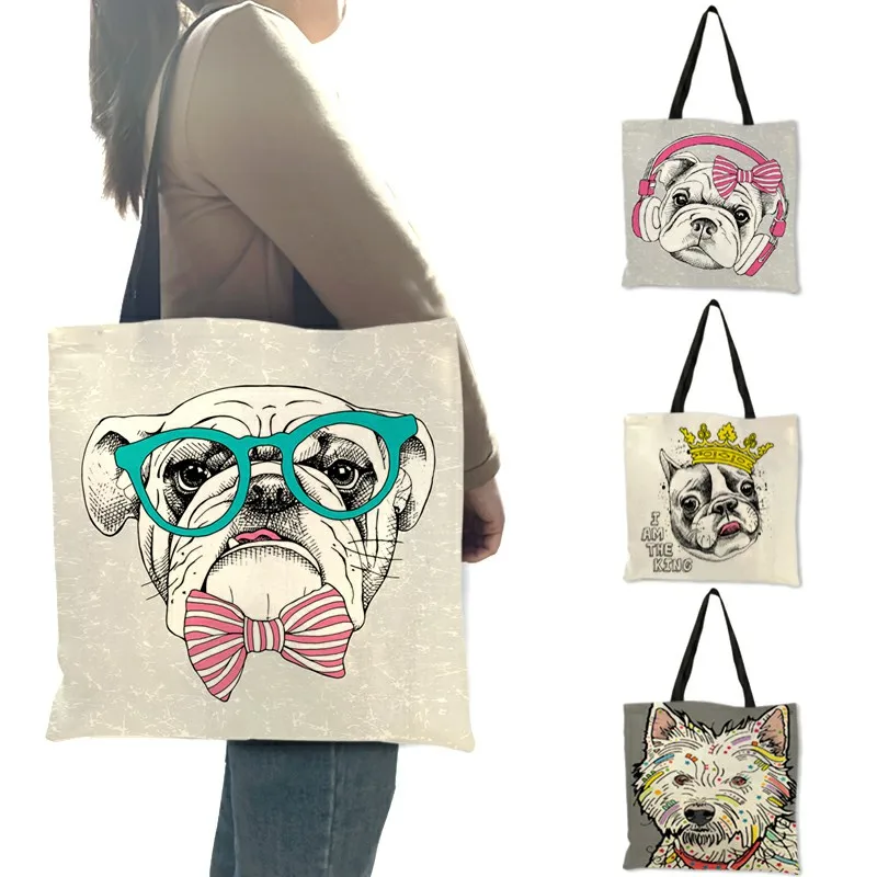 Креативная Сумка-тоут с принтом бульдога терьера, женские сумки, экологичные льняные сумки для покупок с индивидуальным принтом, дорожные школьные сумки
