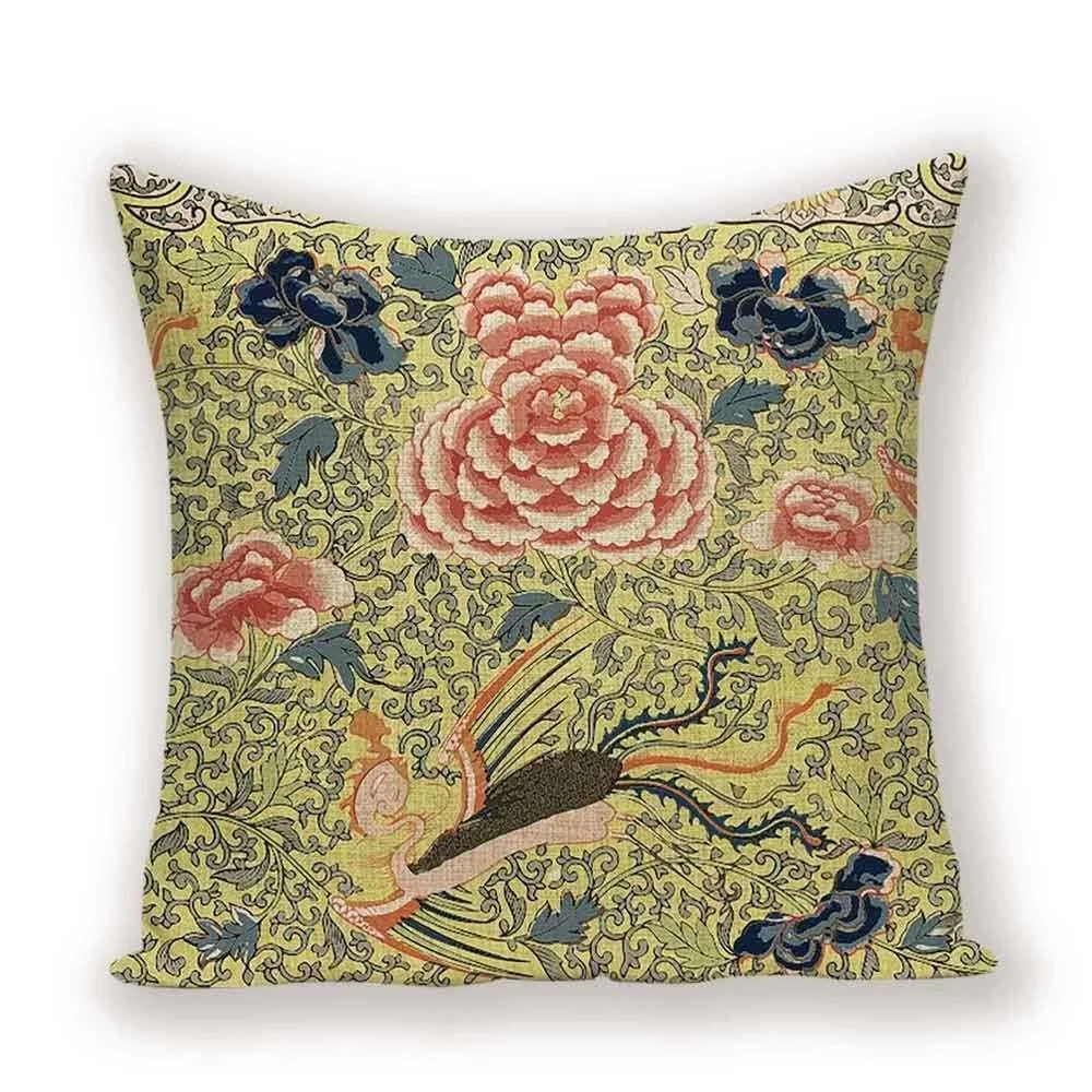 Чехол в стиле ретро с изображением цветов, декоративные льняные нав...