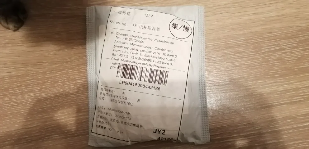 Страна: RU Color: TG105 Доставка: Cainiao Super Economy 24.02.2021