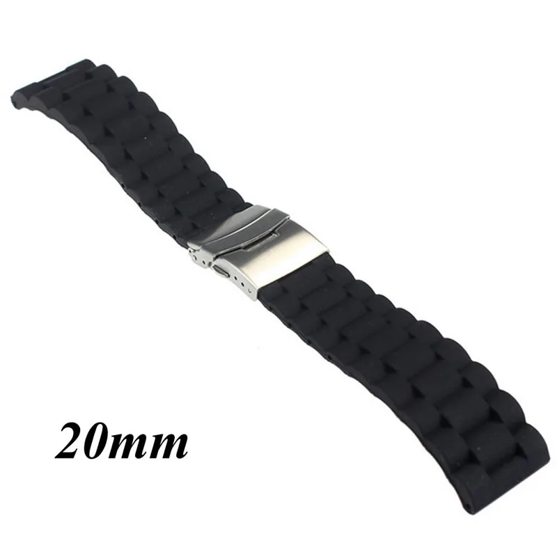 Черный силиконовый резиновый ремешок для часов с пряжкой, водонепроницаемый 20 мм 22 мм W2952001