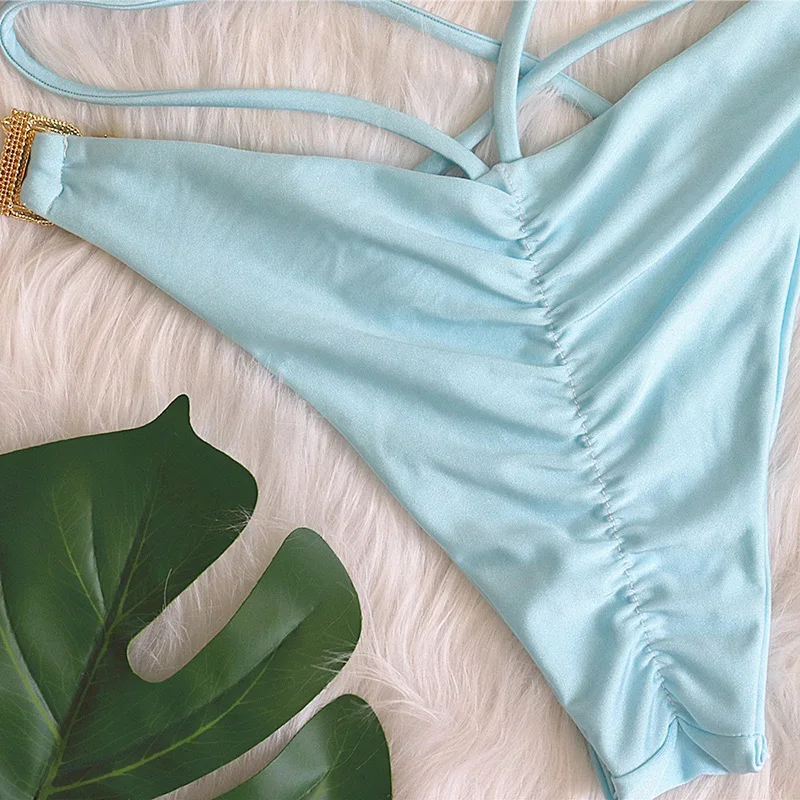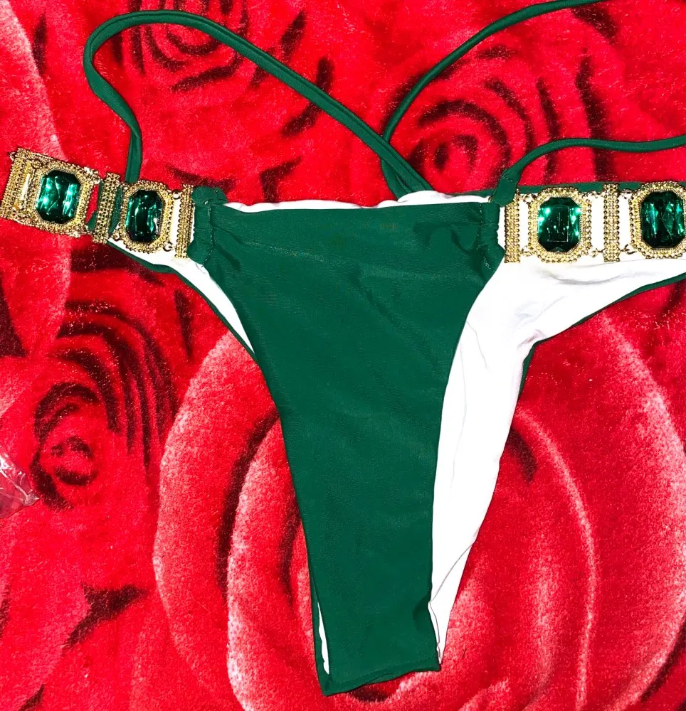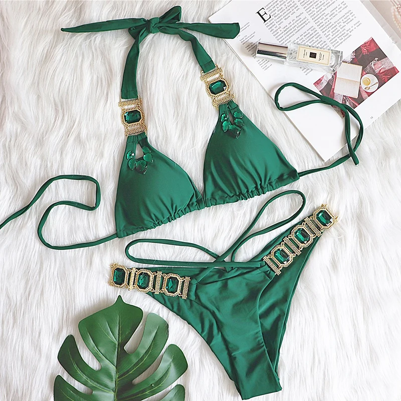 Сексуальное бикини с кристаллами и бриллиантами, женский купальник-бандо с лямкой на шее, Женский бразильский купальник, комплект бикини из двух частей, купальный костюм со стрингами, 2021