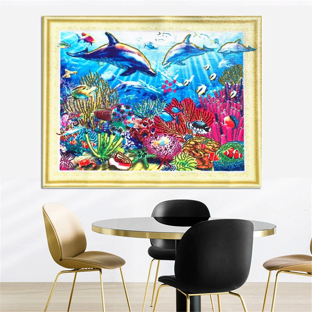 AZQSD алмазная живопись 5D алмазная вышивка с животными продажа Дельфин специальная форма Алмазная мозаика морская ручная работа подарочный набор 40x50