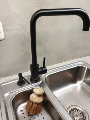 Чёрная часть металлическая. Все плотно, люфтов нет. Носик длинный, удобный. К покупке рекомендую. Доставка быстрая
