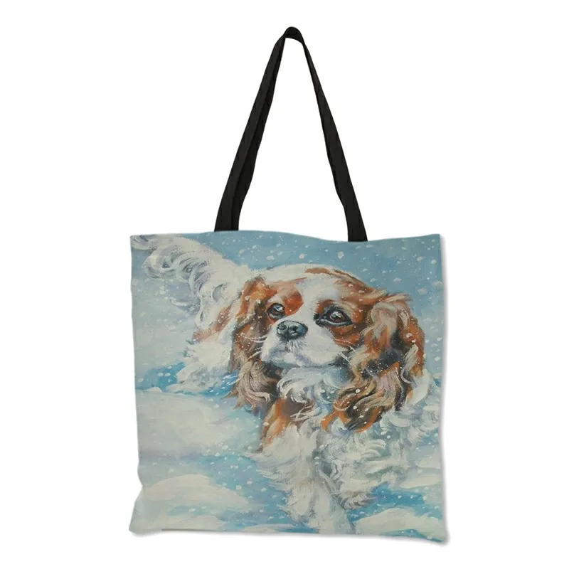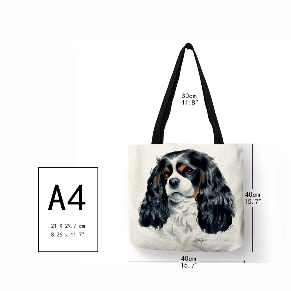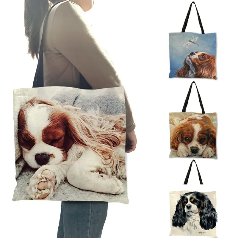 Kawaii щенки Чарльз спаниель Собака Картина маслом принт Женская сумка повседневные сумки на плечо для школьной работы многоразовая сумка для покупок с короткими ручками
