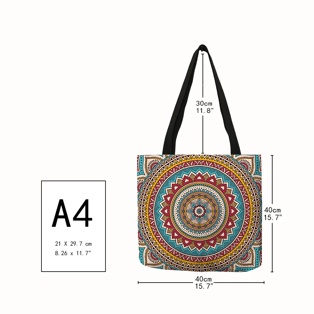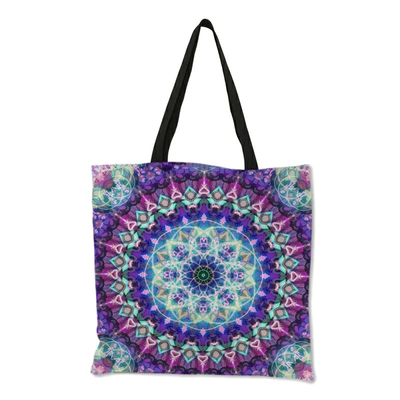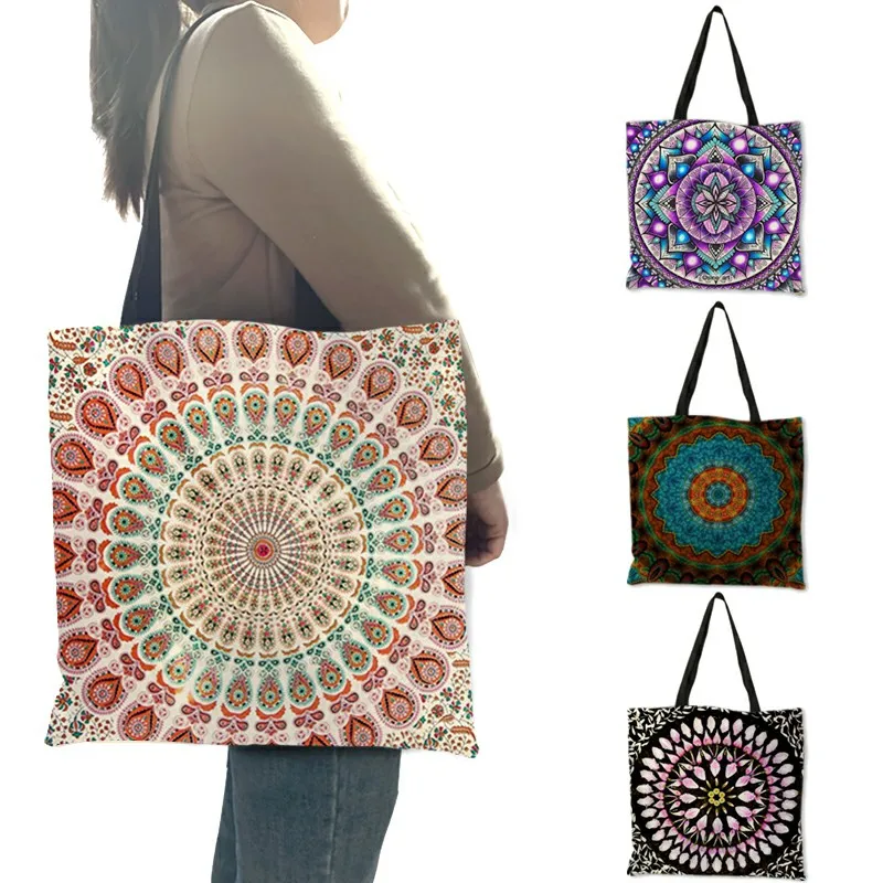 Чехол с изображением цветка мандалы ткань сумки-шопперы для женщин Эко льняной Многоразовые Складная сумка для покупок Цветочный принт Сумки для Леди Путешествия Пляж