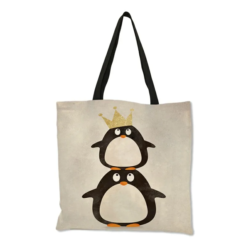Льняная сумка-тоут с рисунком животных, многоразовые модные дамские...