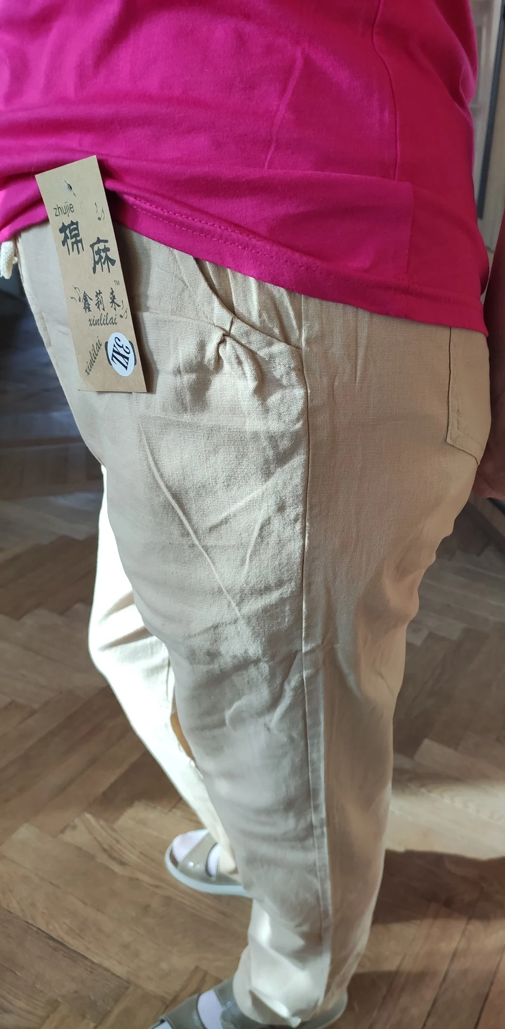 Хорошие брюки. На 46 размер взяла xl. Сели отлично. Действительно хлопок, либо очень похоже. Приятные к телу. Для весны-лета хорошо подойдут. Доставка в Минск-почти 2 месяца.