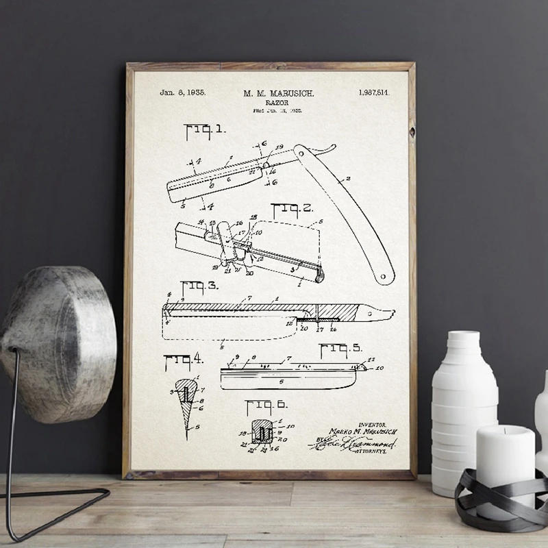 Парикмахерская бритва лакированная печать на холсте Парикмахерская плакат Декор для стен в винтажном стиле план картина подарком для друзей и близких изображения отделки стен