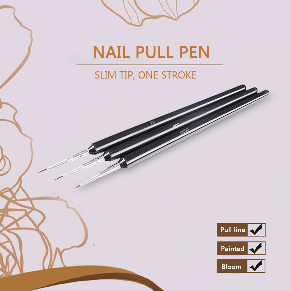 3 шт.компл. кисть для дизайна ногтей Кристалл акриловая тонкая фотокартина полосы цветы