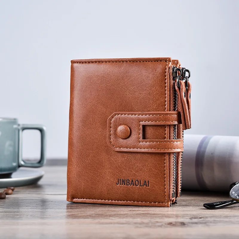 Мужские кошельки, Короткие Кошельки из искусственной кожи с двойной молнией, с отделением для карт, винтажные брендовые кошельки для мужчин, 2019