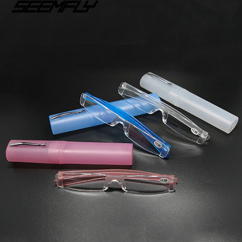 Очки для чтения унисекс Seemfly, без оправы, с прозрачными линзами, от + 1,0 до + 4,0, с чехлом