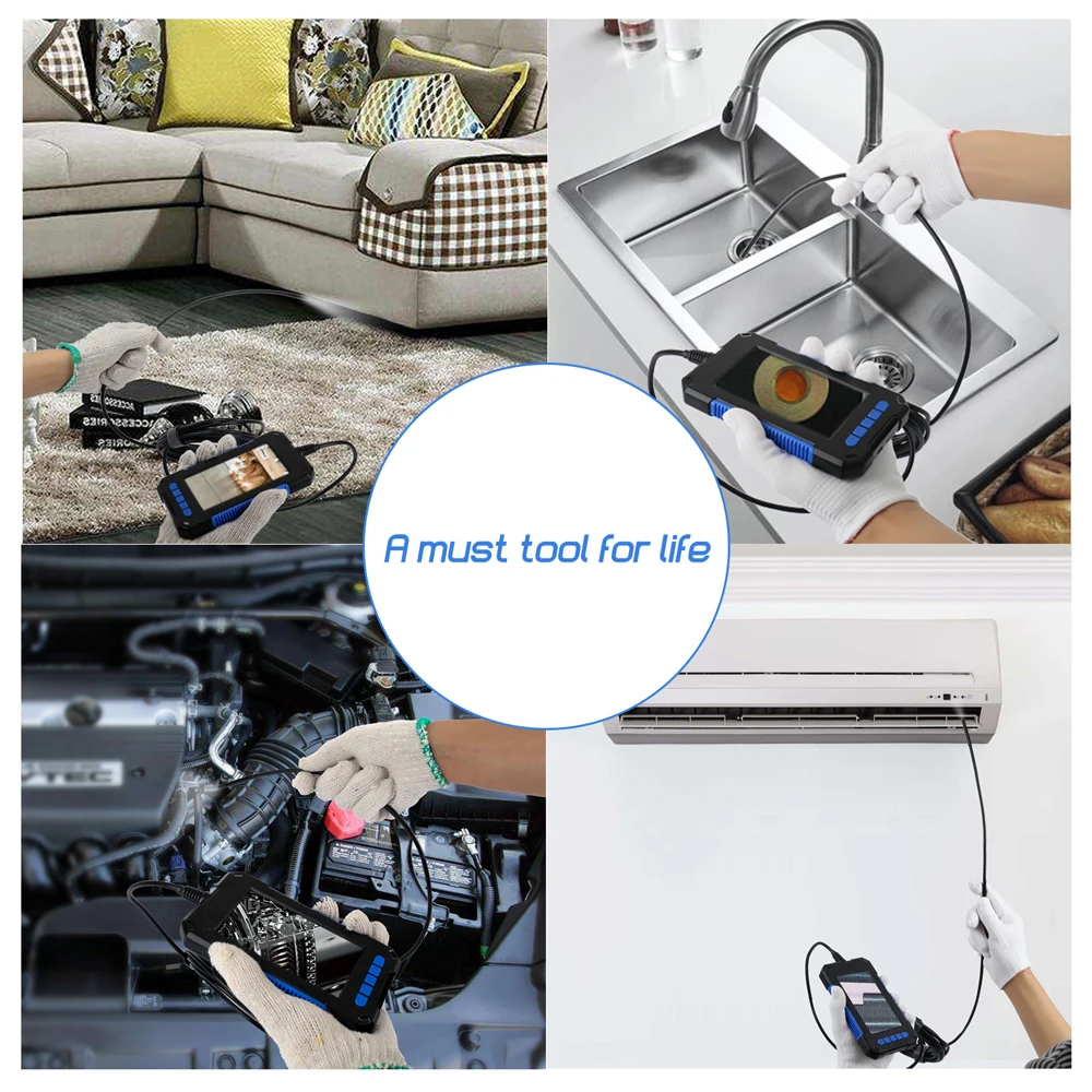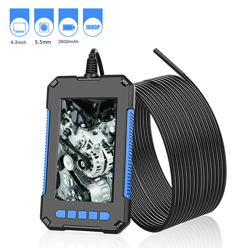 8 мм промышленная камера-эндоскоп 1080P HD 4,3 дюймов ЖК-дисплей Экран эндоскоп IP67 Водонепроницаемый бороскоп 8 светодиодов 2600 мАч, Батарея