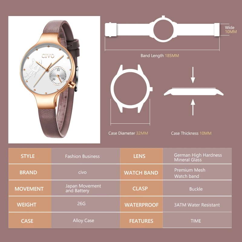 Женские кварцевые часы с кожаным ремешком, водонепроницаемые, 3 АТМ, 2021