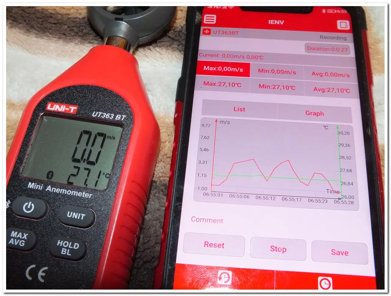 Цифровой мини-Анемометр UT363 UT363BT UNI-T, с ЖК-подсветкой, диапазон измерений 0-30 мс, измеритель скорости ветра