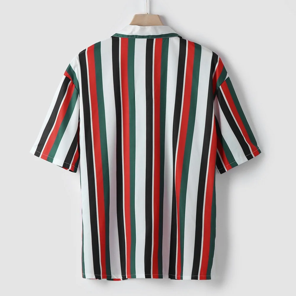 Men Breathable Stripe SummerLoose Buttons Casual Shirt