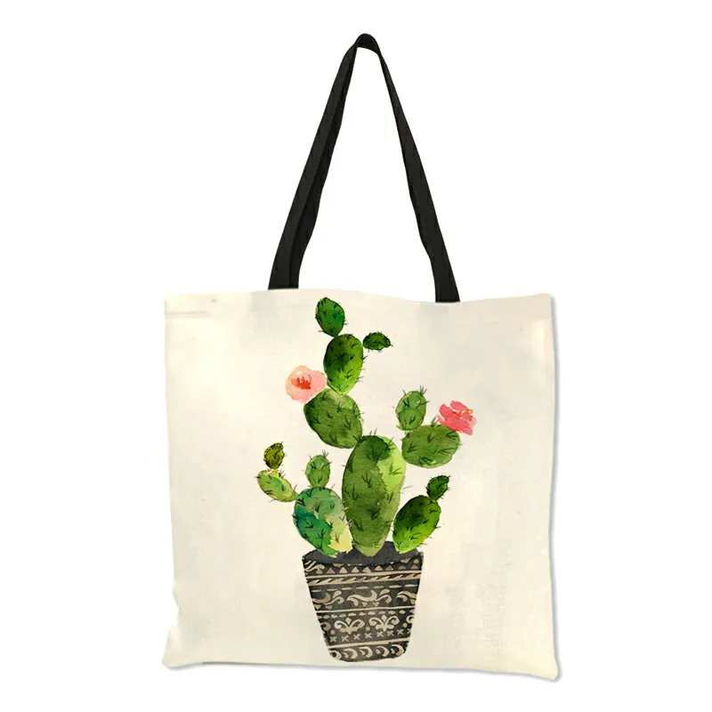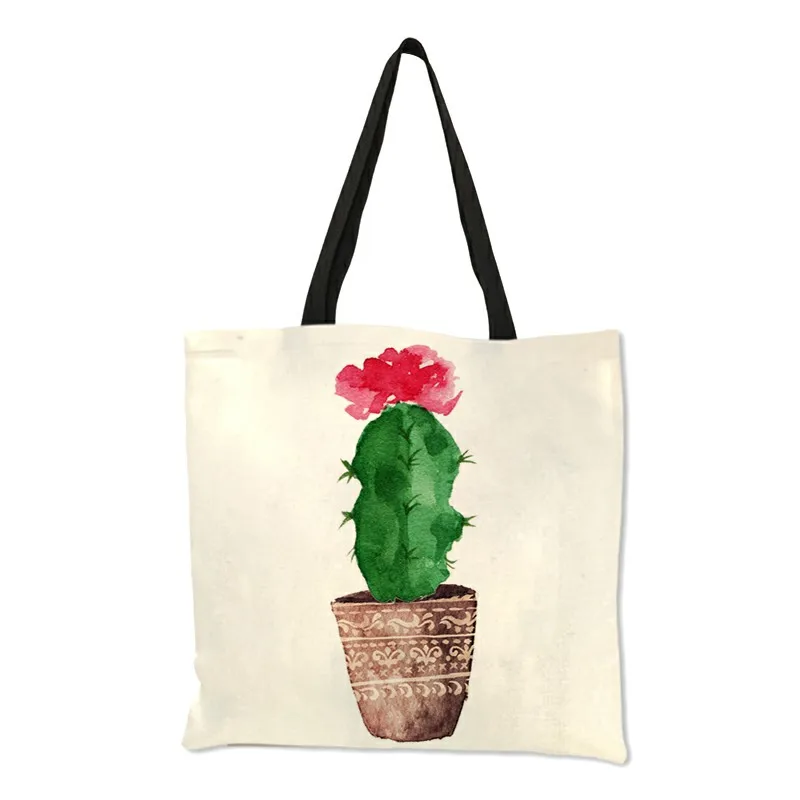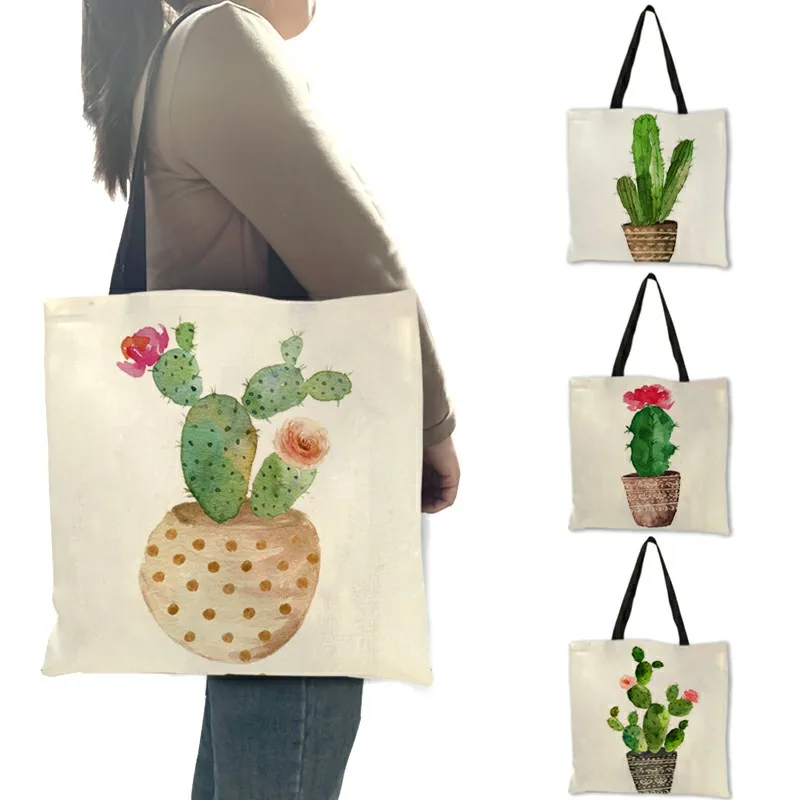 Сумка-тоут женская льняная с принтом кактуса, модный саквояж многоф...