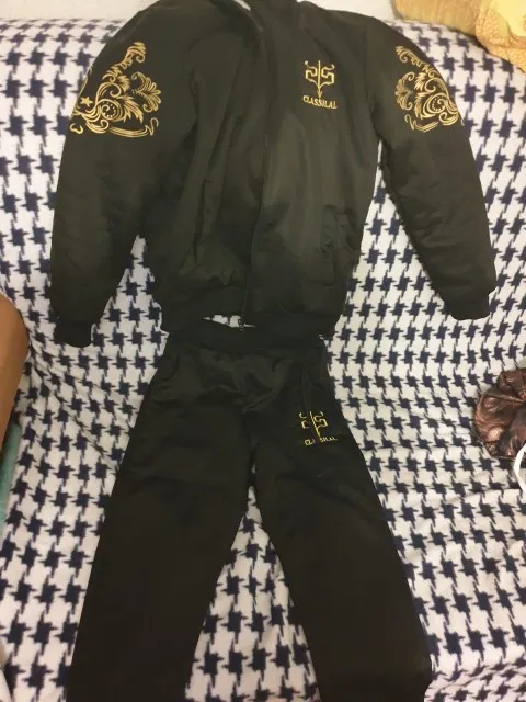Костюм доставлен за 3 недели. Расцветка соответствует описанию. Но качество ткани не понравилось, блестит и скрипит, как 100% дешевая синтетика, никакого хлопка в составе не ощущается. Бирки с составом нет. Размер М впритык на рост 160 см на стройного мальчика. Брюки по сравнению с кофтой тоньше, без искусственного меха. Не самая удачная покупка.