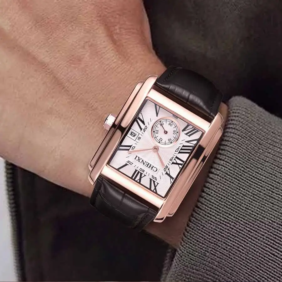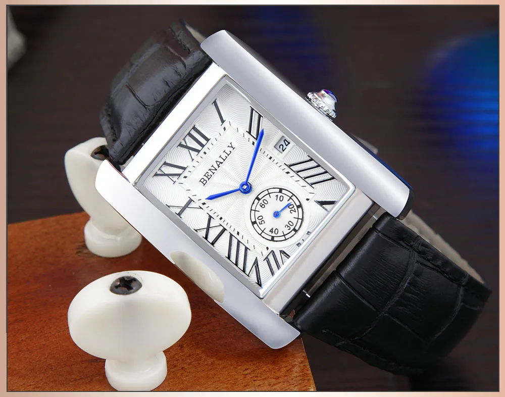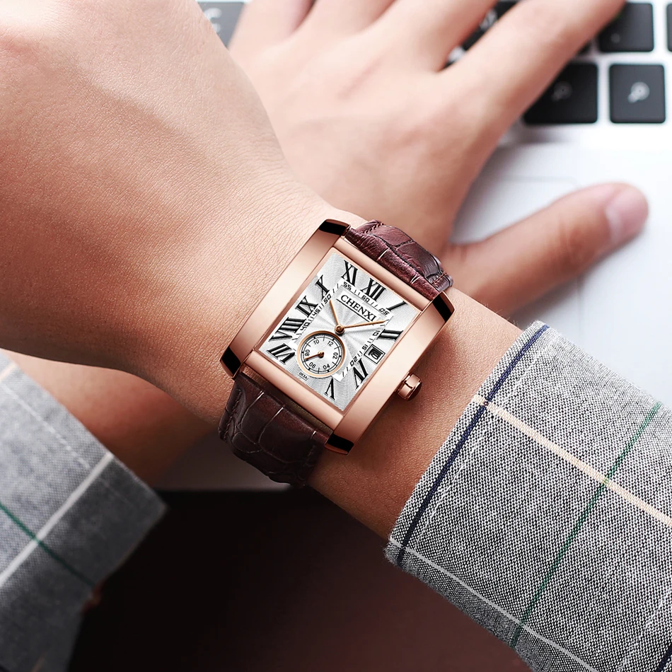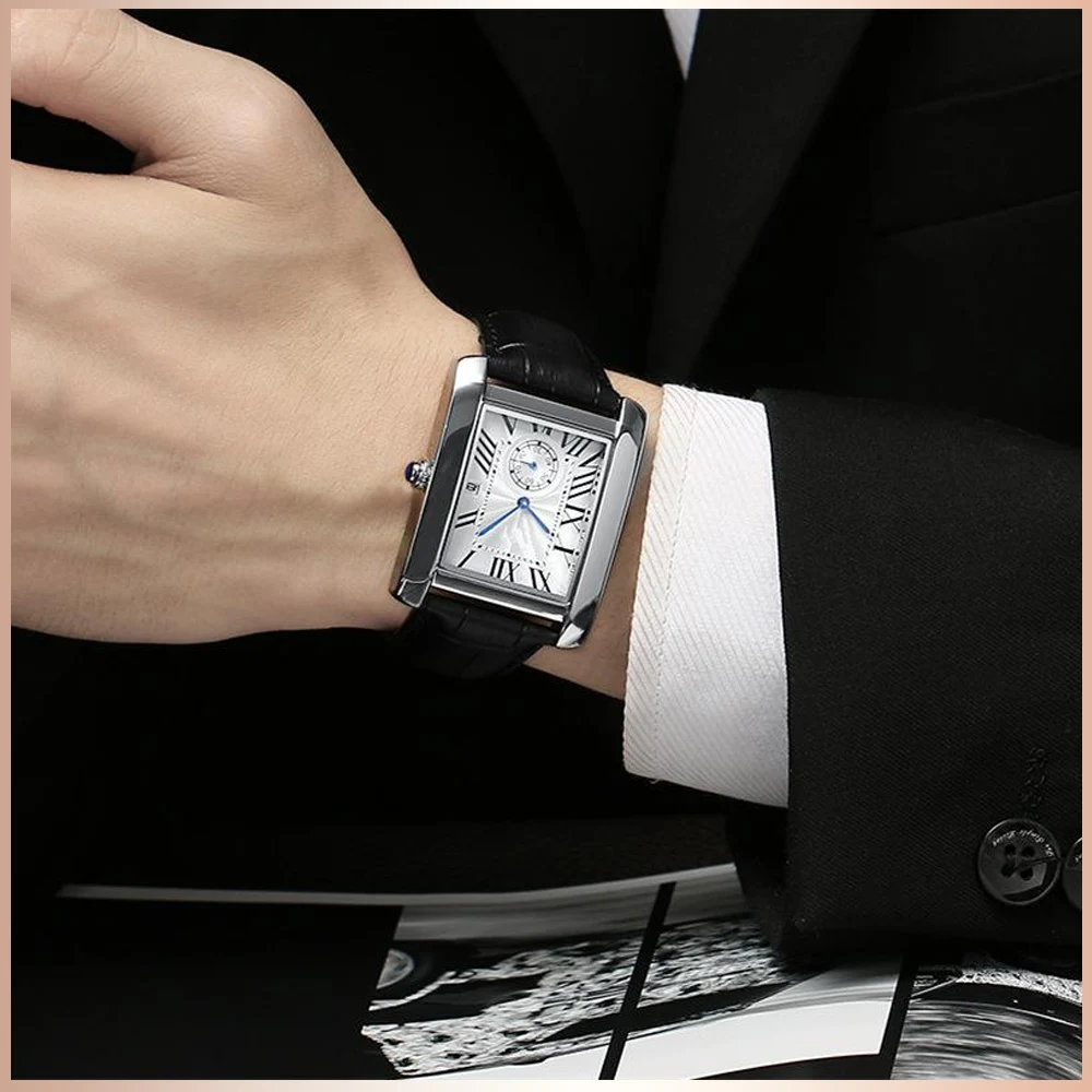 2021 Модные мужские наручные часы с квадратным циферблатом, мужские наручные часы с подсветкой из натуральной кожи, Роскошные водонепроницаемые мужские часы от лучшего бренда