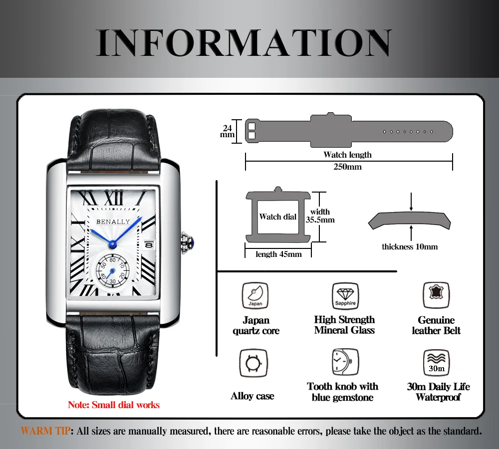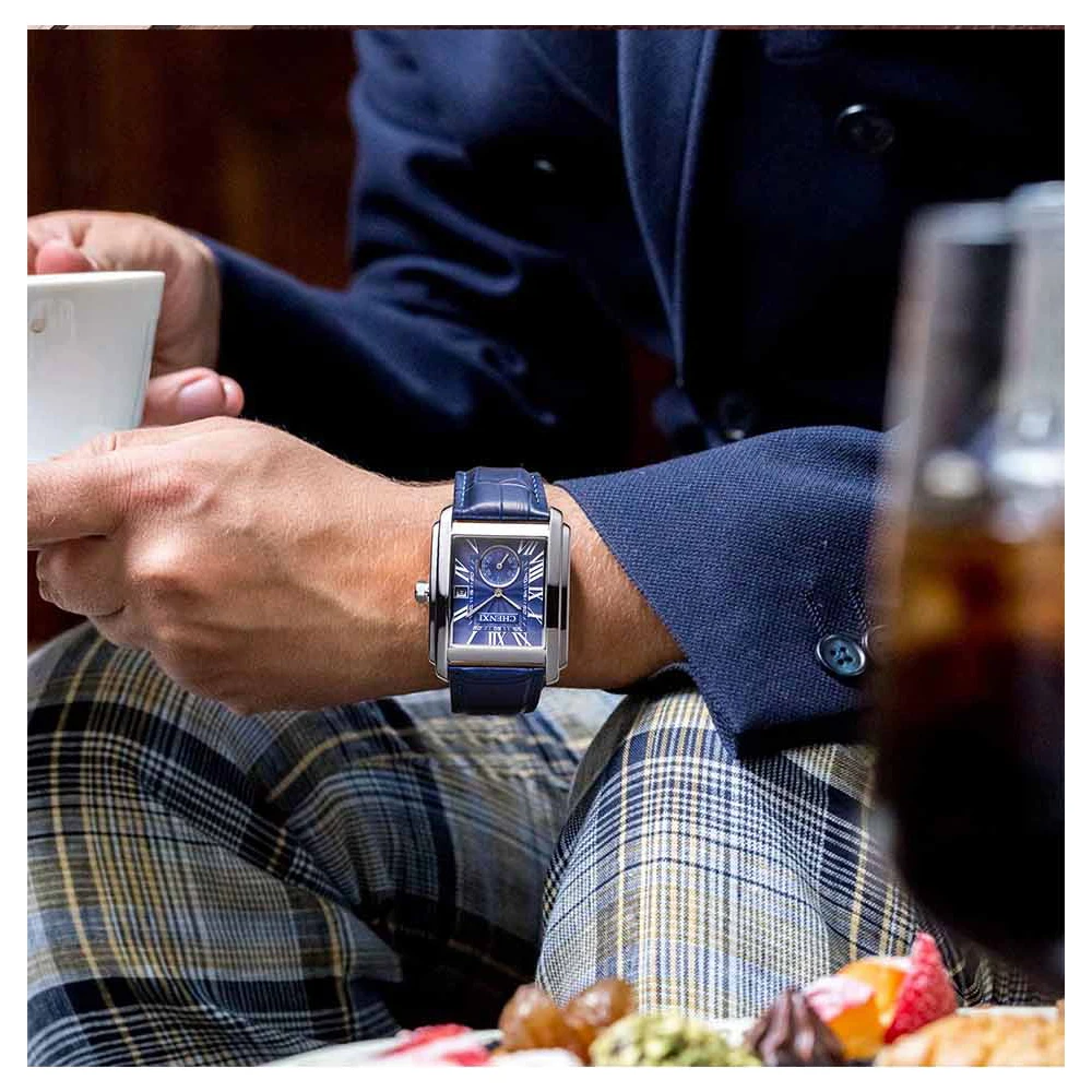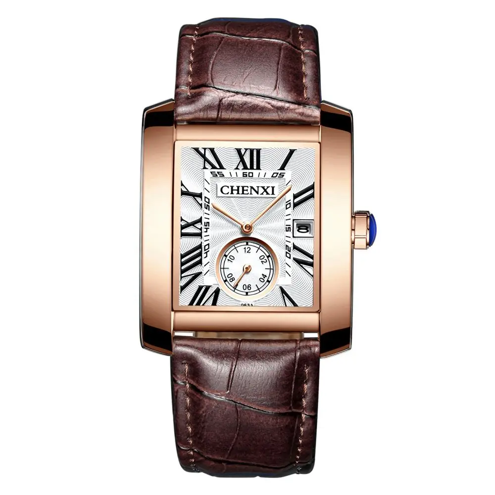 2021 Модные мужские наручные часы с квадратным циферблатом, мужские наручные часы с подсветкой из натуральной кожи, Роскошные водонепроницаемые мужские часы от лучшего бренда