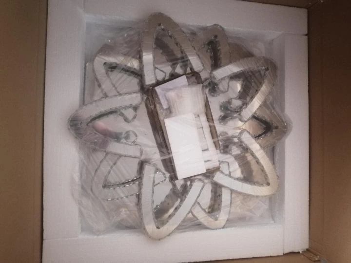 Светилник пришел оперативно. Комплектация и внешний вид полностью соответсвует описанию. Выглядит на потолке очень стильно и аккуратно