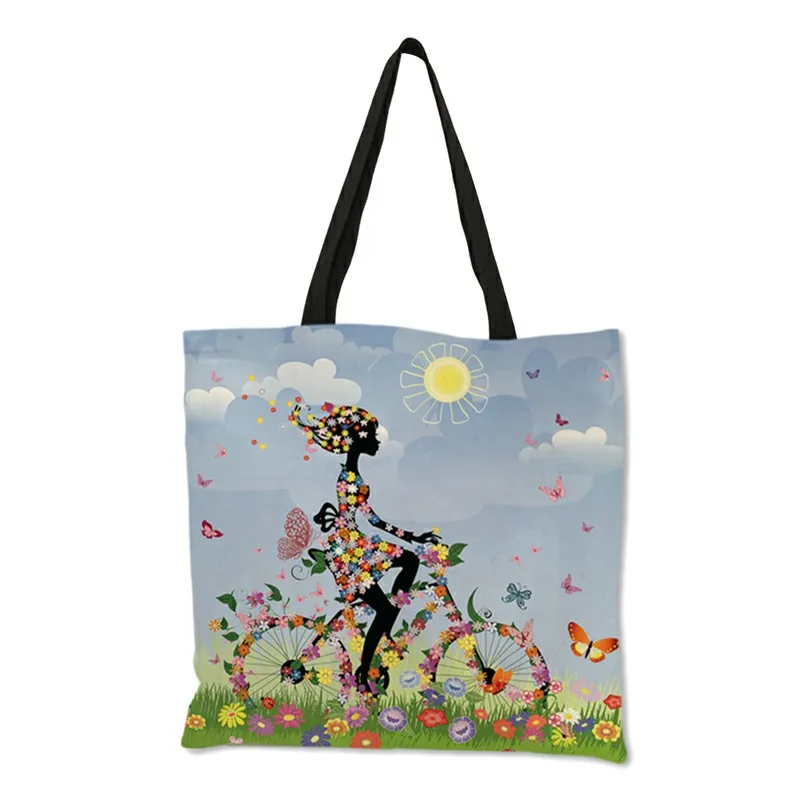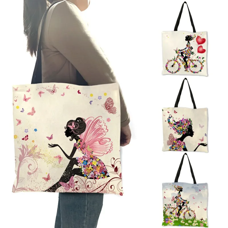 Льняные многоразовые сумки для покупок с принтом желаний для девушек, дорожные сумки, женские модные сумки с индивидуальным принтом, Прямая поставка