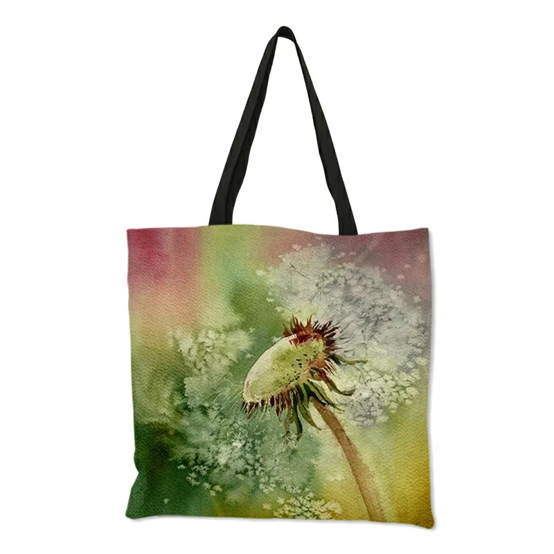 2018 модная женская сумка-тоут с принтом одуванчика, Экологичная льняная дорожная школьная сумка, Повседневная практичная сумка для девушек