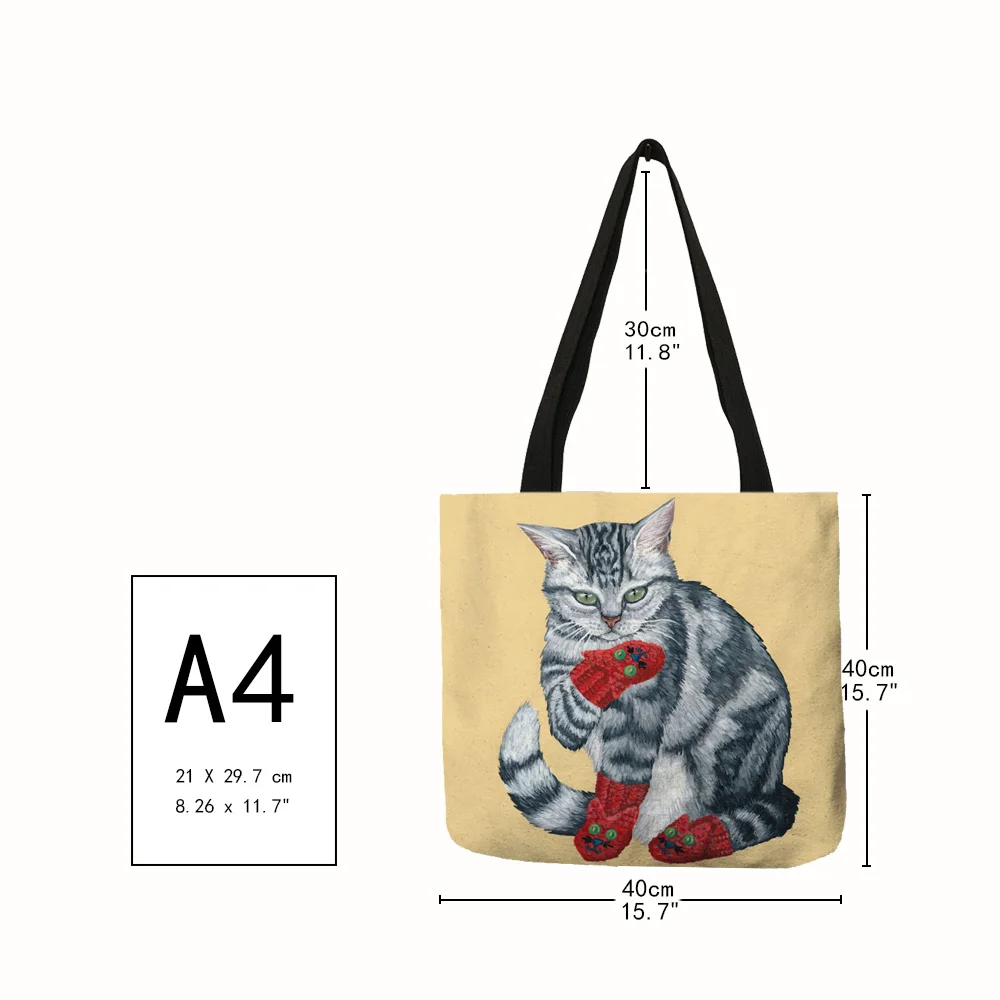 Индивидуальная женская сумка с милым принтом кота, льняные тоуты с ...