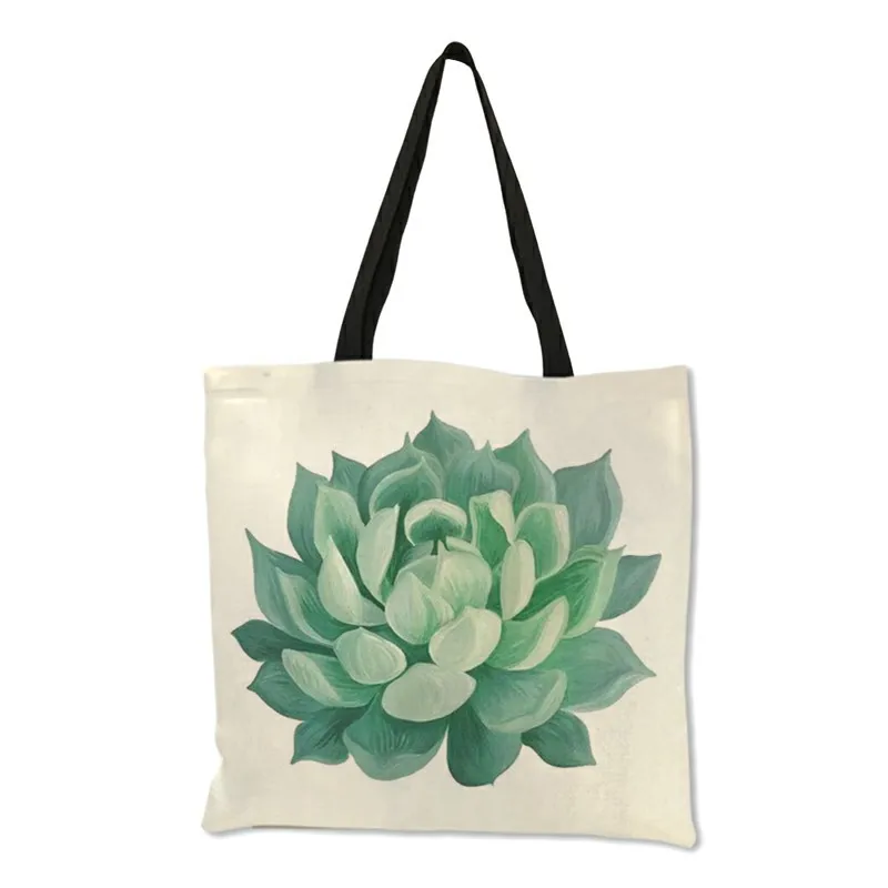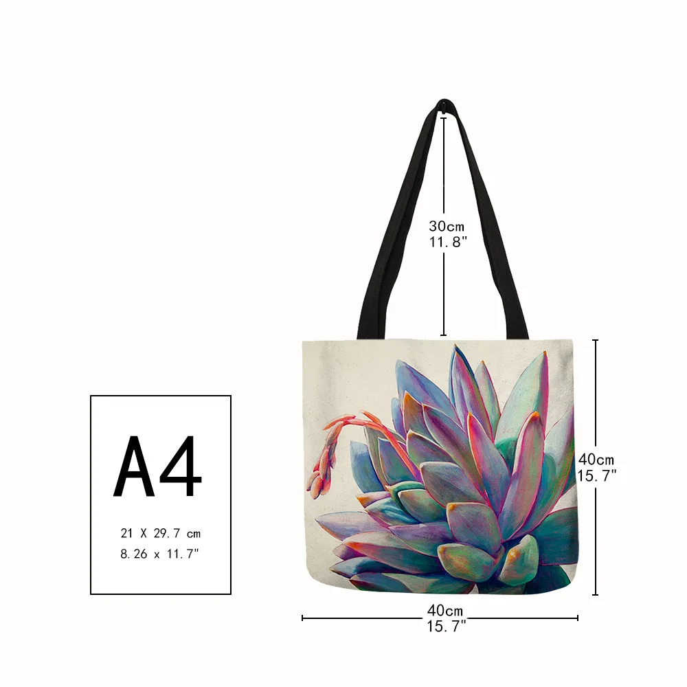 Акварельные тропические суккулентные льняные сумки с принтом растений цветочные сумки-шопперы для женщин складные многоразовые сумки для покупок дорожные сумки