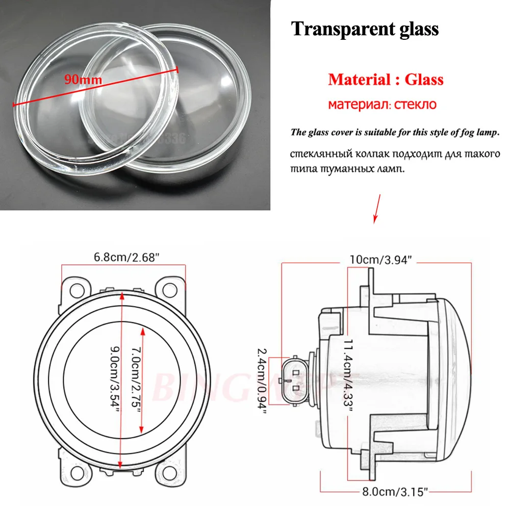Стекло противотуманное круглое, диаметр 90 мм, 2 шт.
