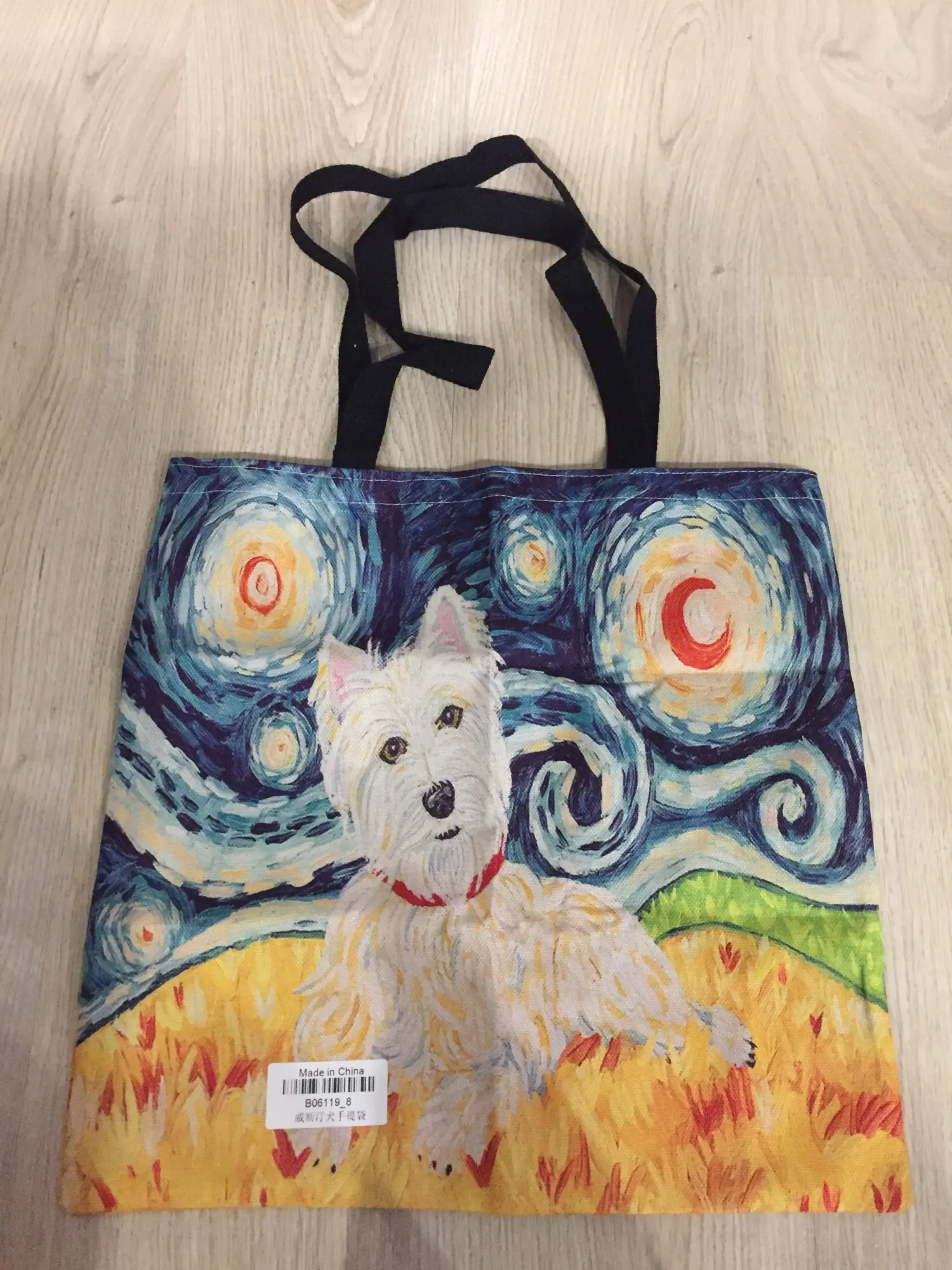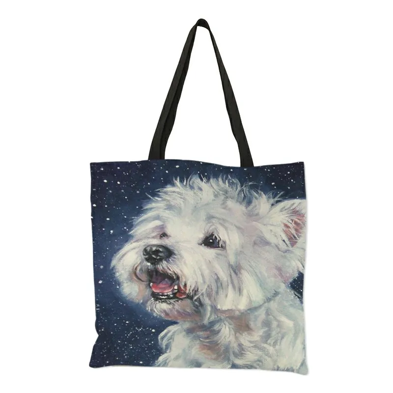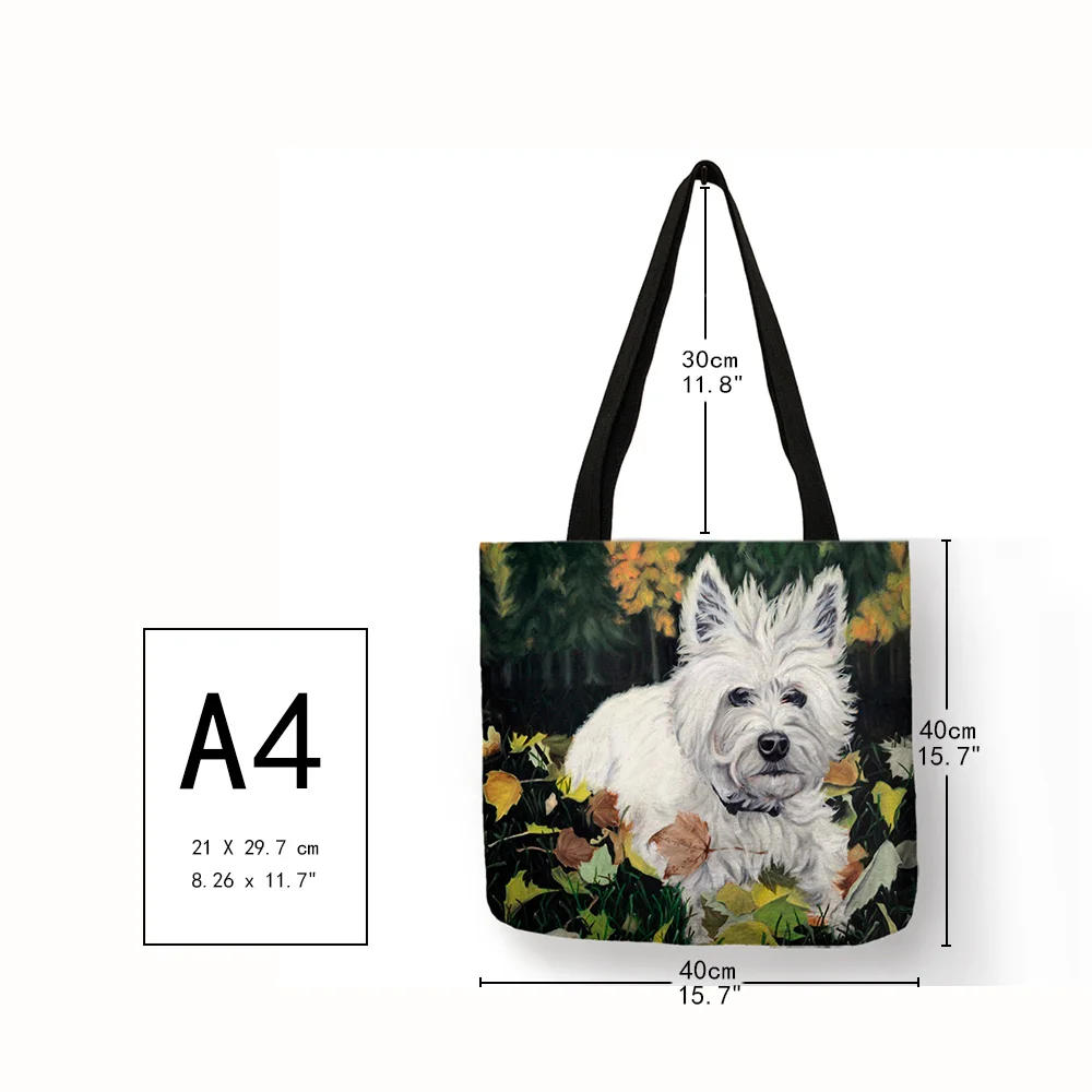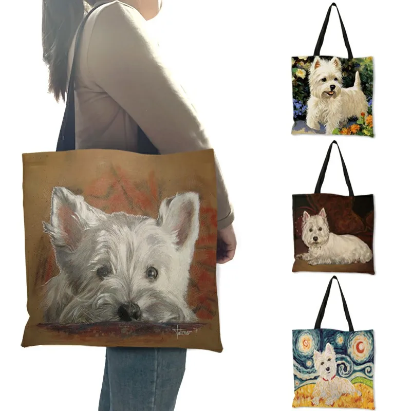 Женская сумка-тоут с изображением собаки Westie, вместительная эко-Льняная сумка с уникальным дизайном, сумки для покупок и поездок