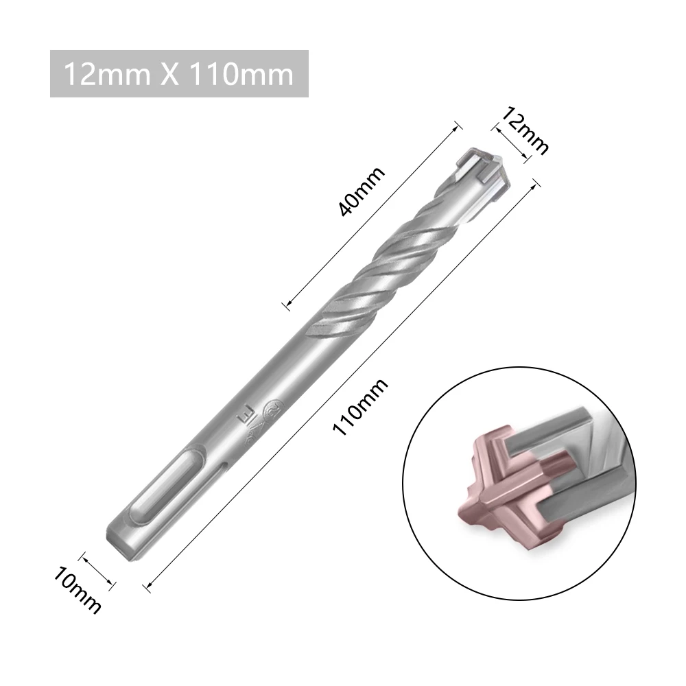 Сверла по бетону SDS Plus, 4 наконечника, 110 мм, 160 мм, 1 шт.