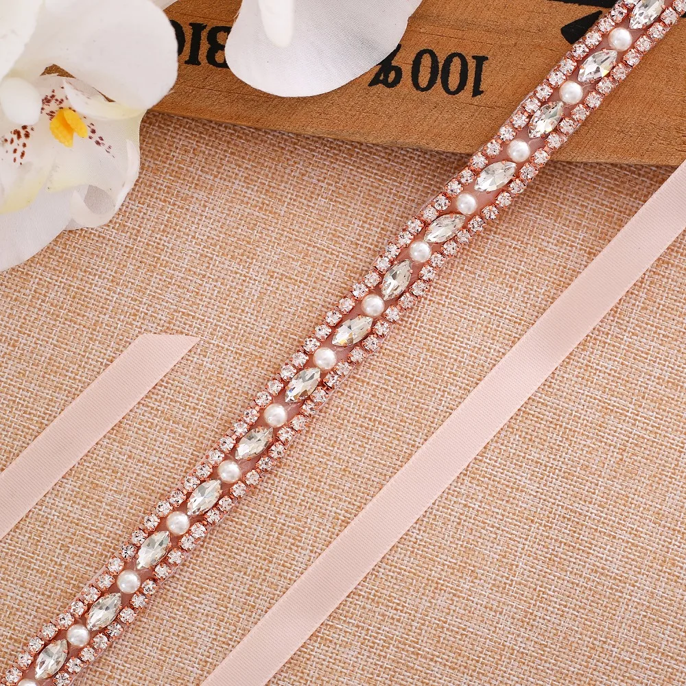 Хрустальный свадебный пояс SESTHFAR с розовым золотым жемчугом стразы свадебные ленты пояс для свадебного платья