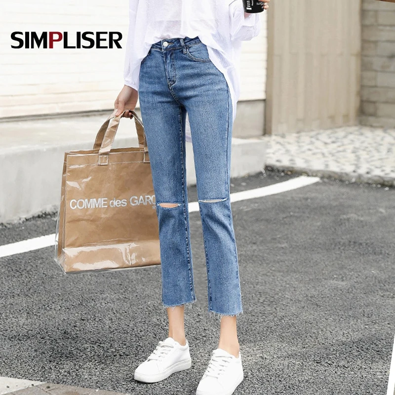 Рваные джинсы, женские брюки-Капри до щиколотки, эластичные, синие, черные, серые, большие размеры 32
