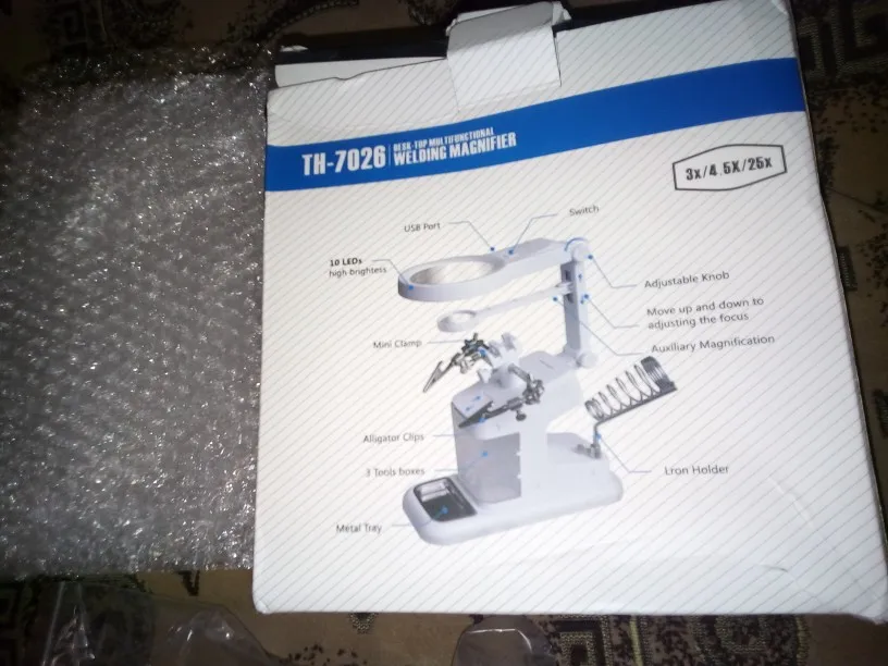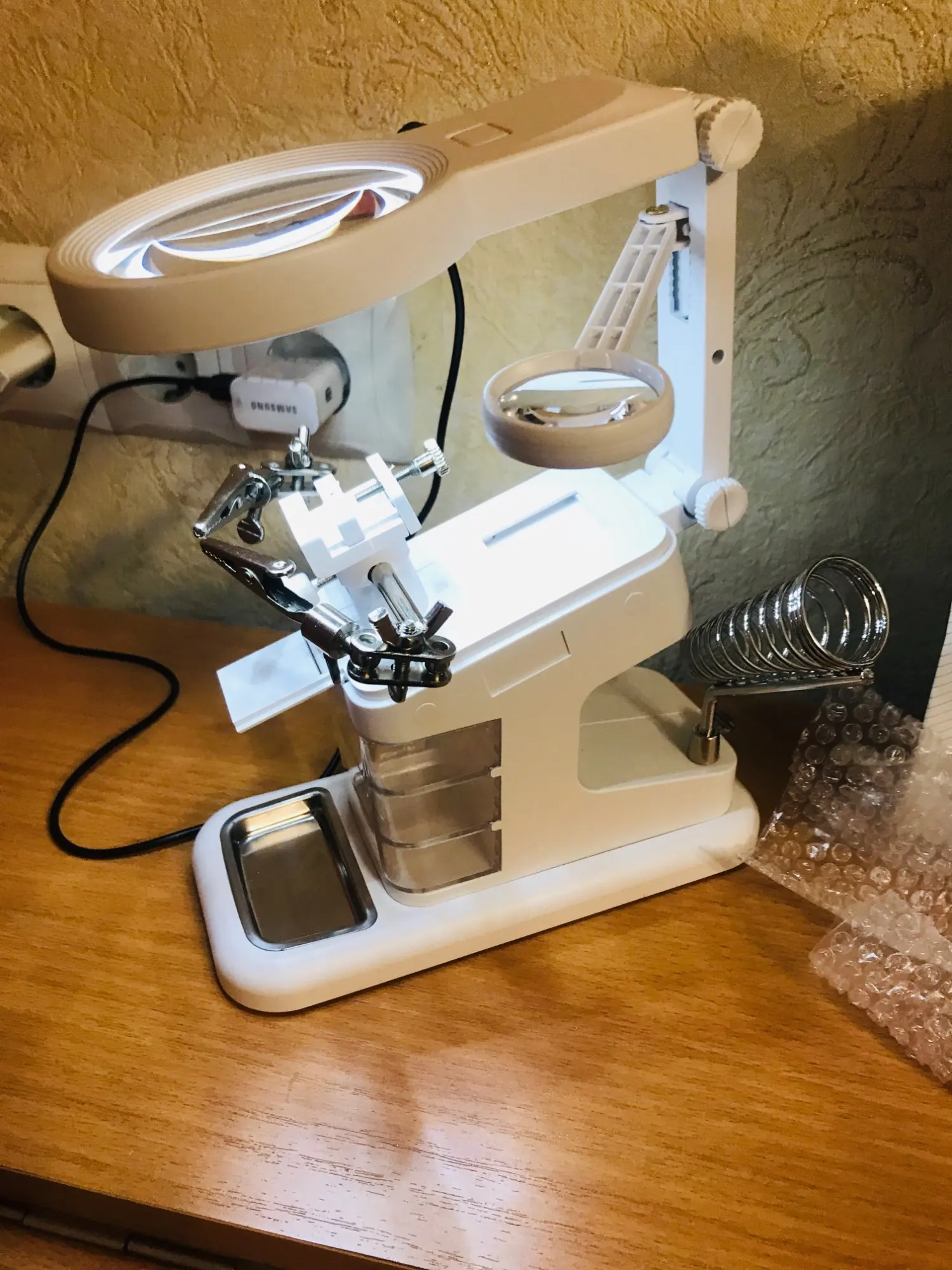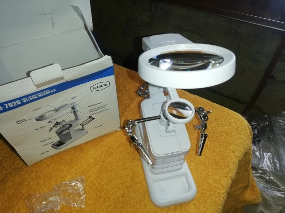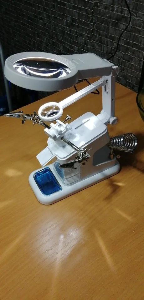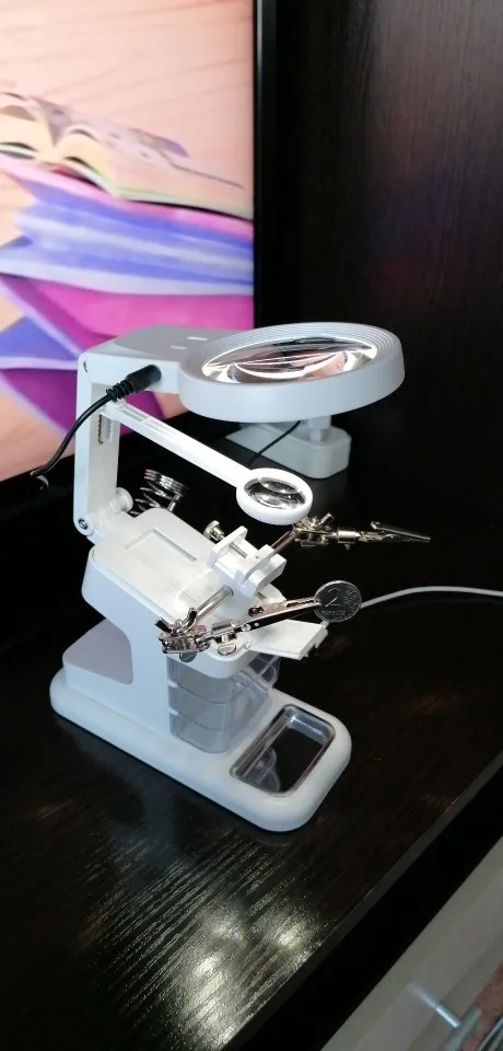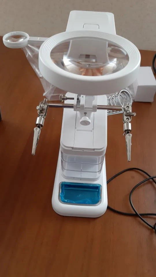 Заказ получил. Доставка чуть задержалась на таможне. Упаковка отличная. Товар хорошего качества: пластик не воняет, прочный, линзы чистые, без царапин, все фиксируется хорошо, планка с крокодильчиками поворачивается с щелчком ( фиксируется в нужном положении) это значит при пайке не будет болтаться туда-сюда. Продавец хороший, на все вопросы отвечает быстро.