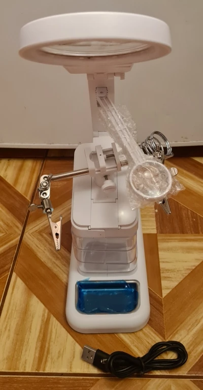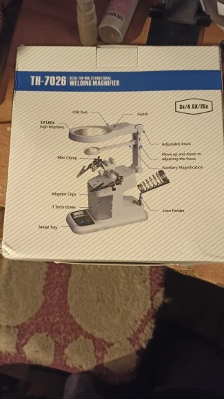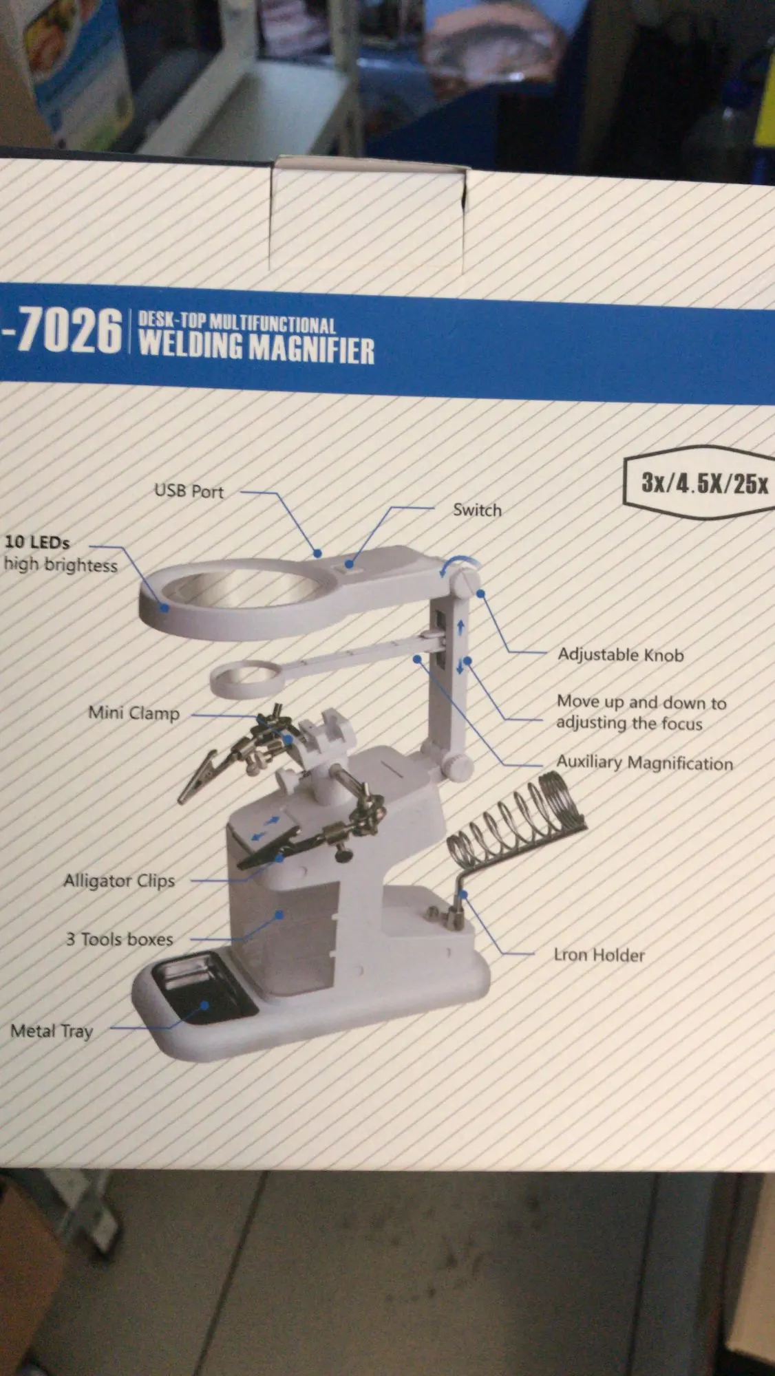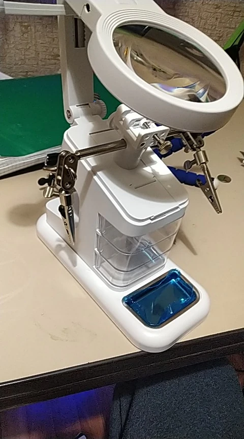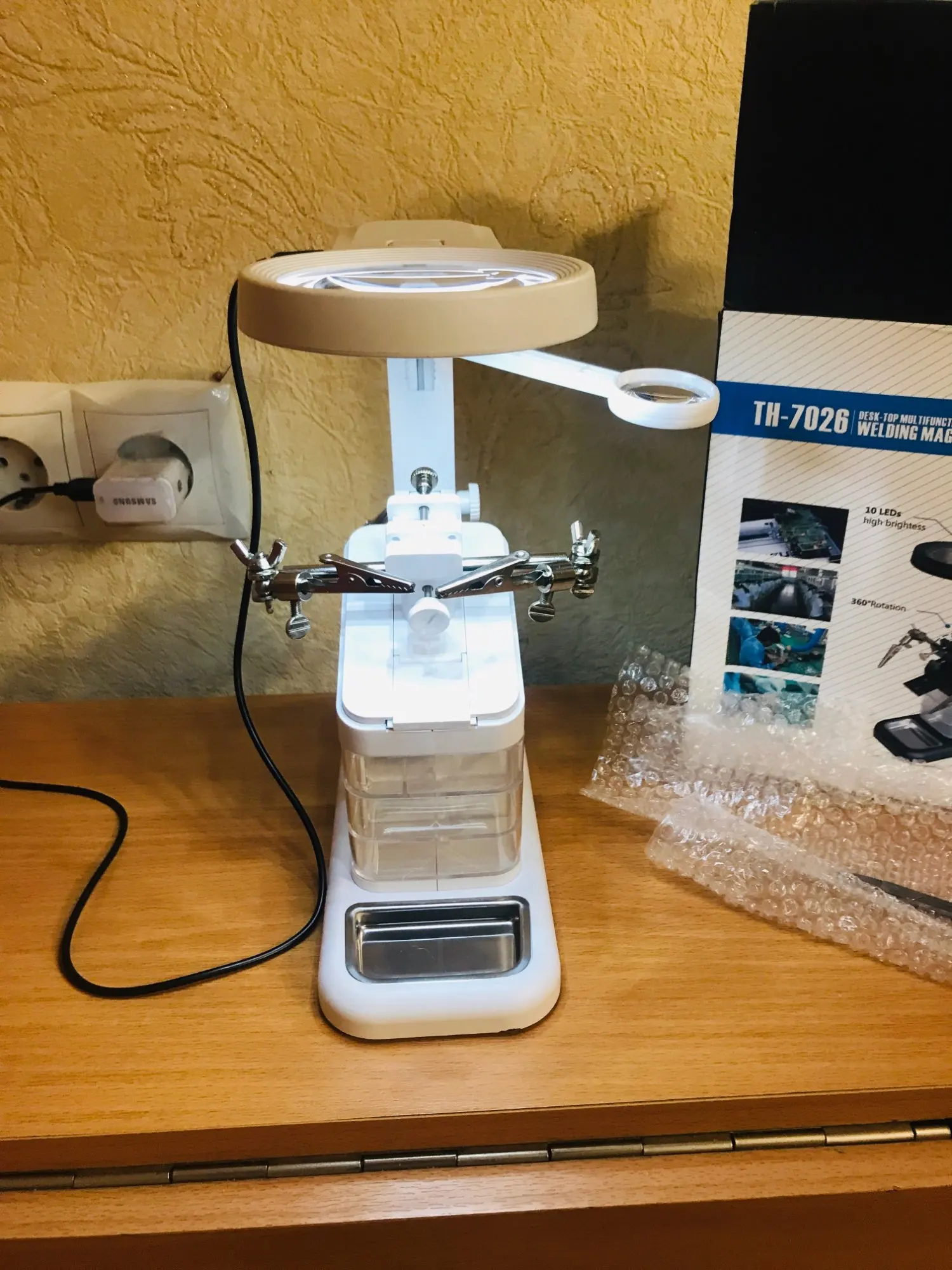Заказ получил. Доставка чуть задержалась на таможне. Упаковка отличная. Товар хорошего качества: пластик не воняет, прочный, линзы чистые, без царапин, все фиксируется хорошо, планка с крокодильчиками поворачивается с щелчком ( фиксируется в нужном положении) это значит при пайке не будет болтаться туда-сюда. Продавец хороший, на все вопросы отвечает быстро.