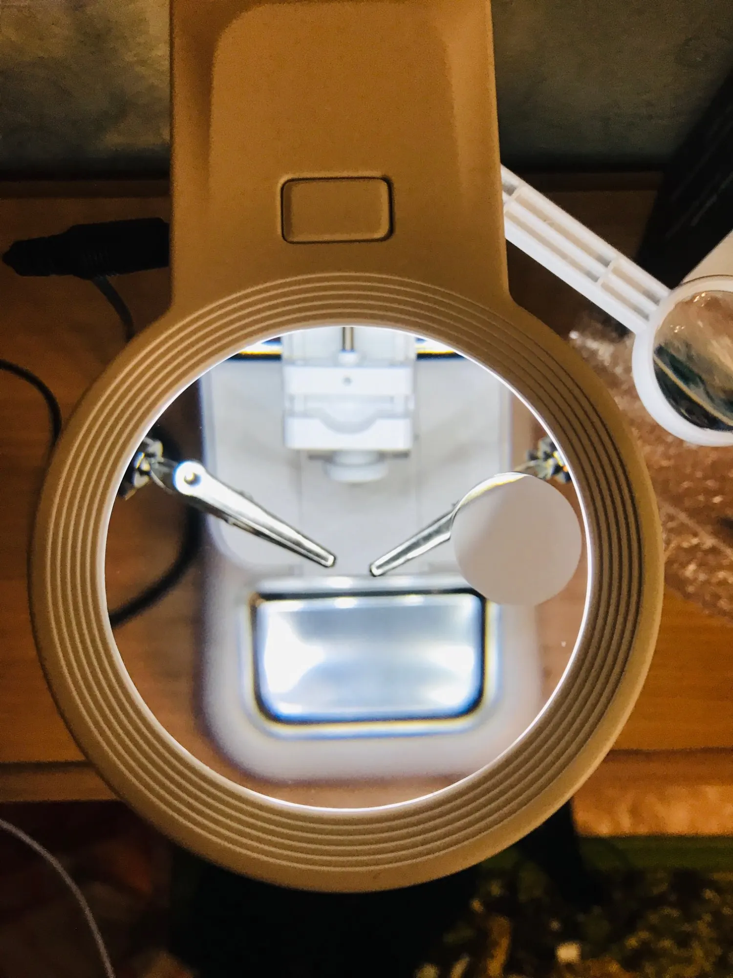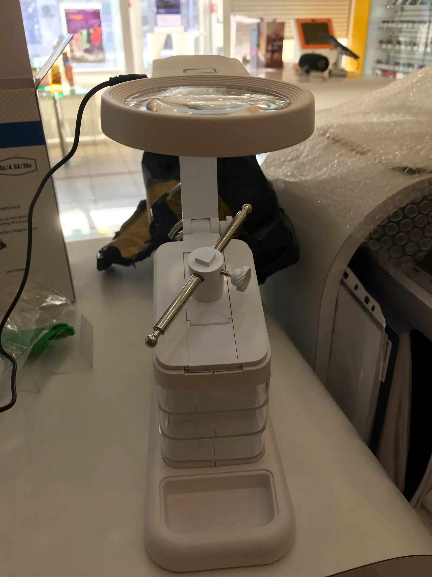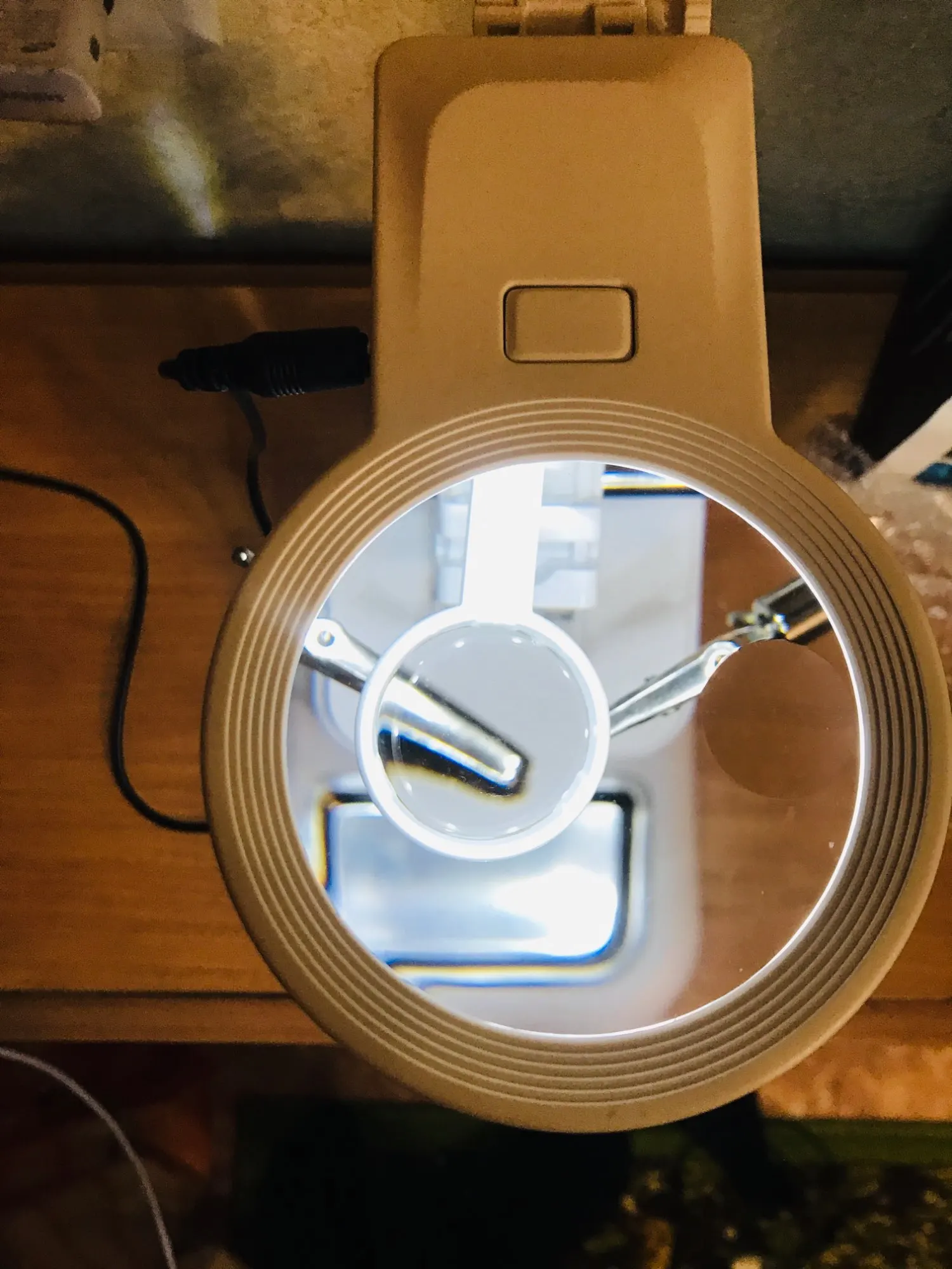 Доставили быстро, пару недель. Товар соотвецтвует заявленному, очень эстетичный. Упакован приемлемо, всё целое. Увеличительные стёкла прозрачные, аббераций визуально не наблюдается.с подсветкой можно качественно разглядеть маркировки деталей. Продавца советую.