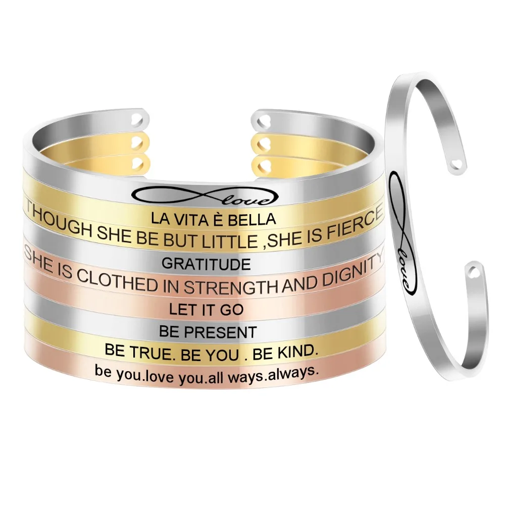 Браслет-манжета из нержавеющей стали, с гравировкой вдохновляющих с...