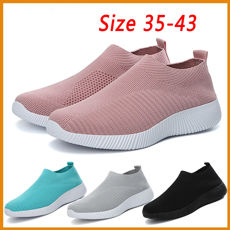 Женская Повседневная обувь больших размеров; Носки из эластичной ткани; Модная женская обувь без шнуровки; Дышащая мягкая прогулочная обувь на плоской подошве; Кроссовки