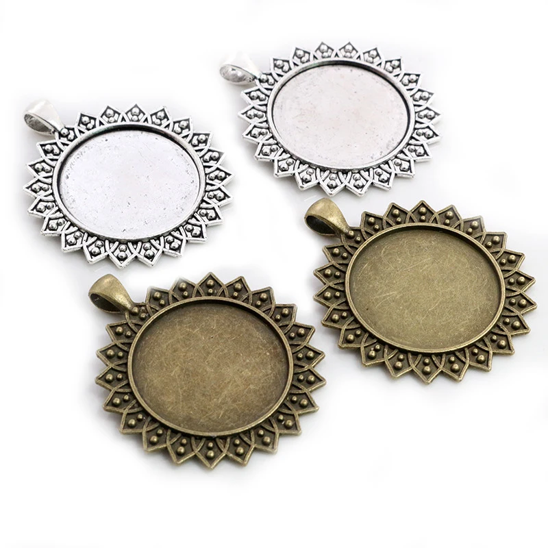 5 шт.лот 30 мм внутренний размер античная бронза и посеребренные цвета цветок Мода Кабошон База Установка Подвески кулон