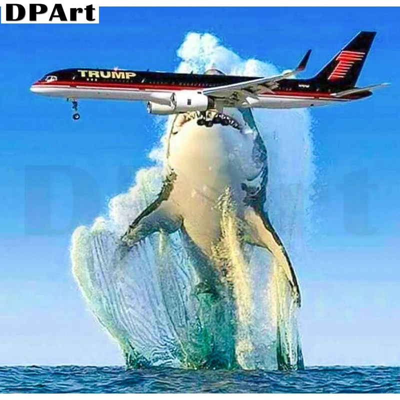 Алмазная картина полностью квадратнаякруглая Акула самолет 5D Daimond вышивка крестиком Набор Мозаика Стразы T155