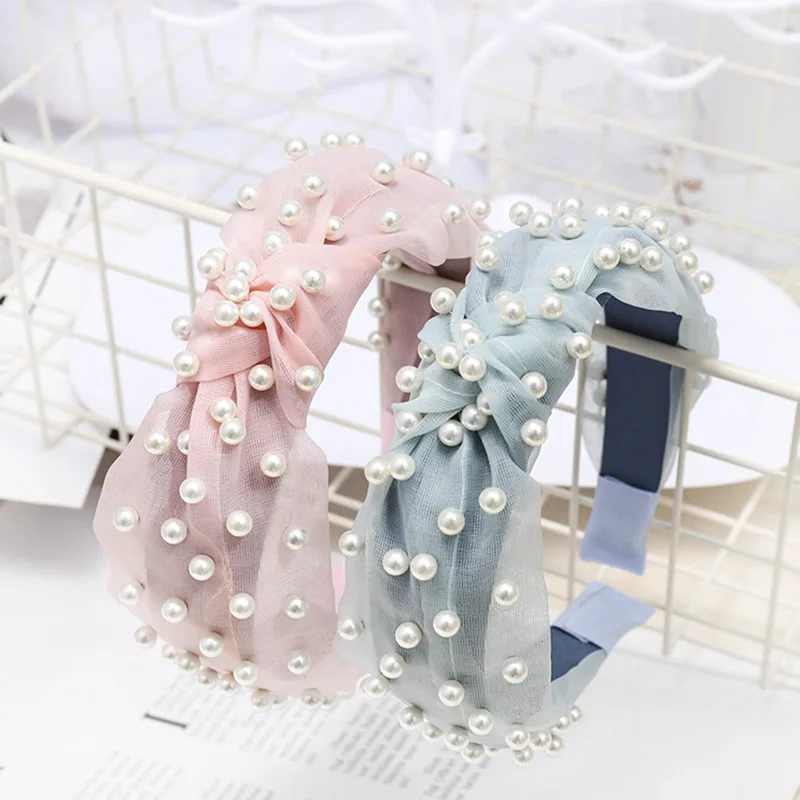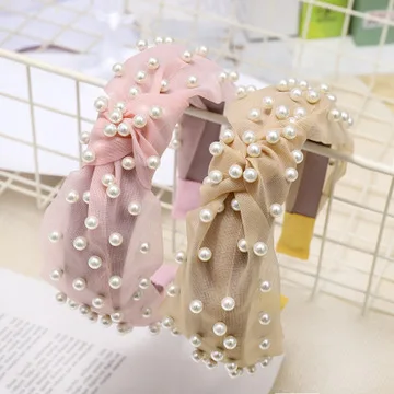 Повязка для волос женская с узлом, мягкая широкая лента с жемчугом, в богемном стиле, карамельных цветов, модный головной убор, лето