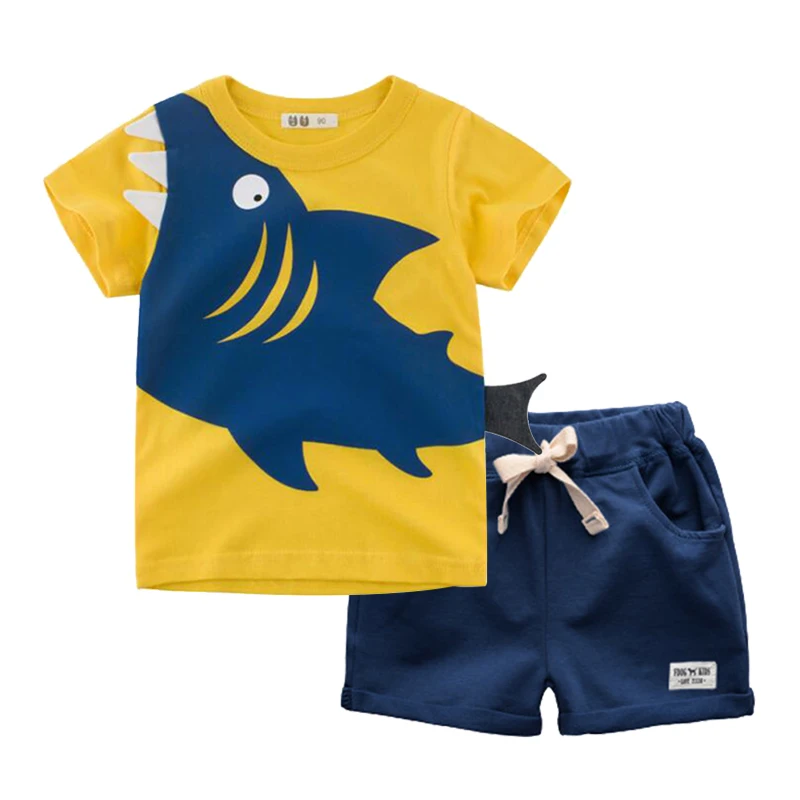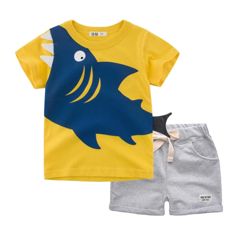 BINUDUCKLING, модная летняя одежда для маленьких мальчиков, комплект детской одежды с принтом акулы, футболка с коротким рукавом + шорты