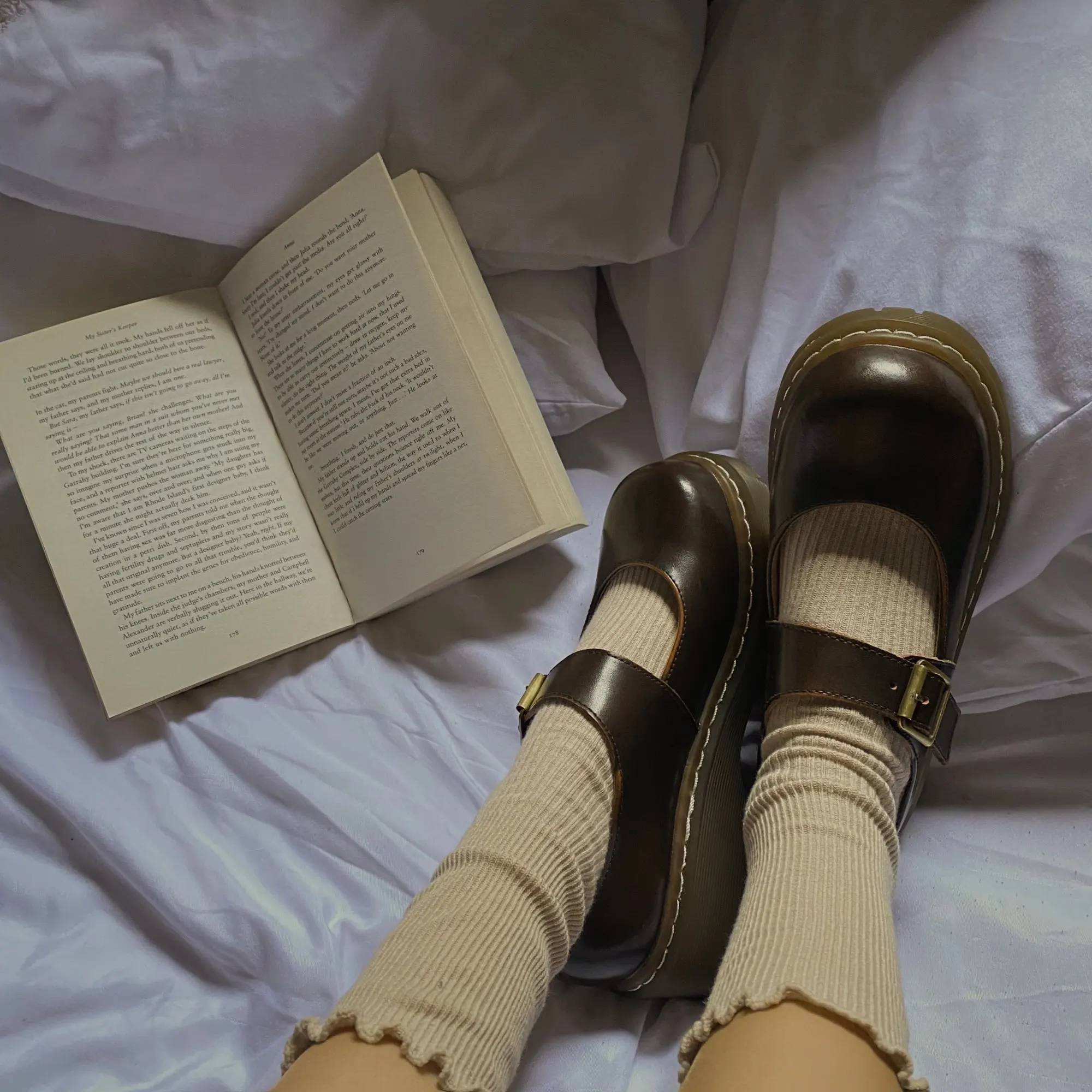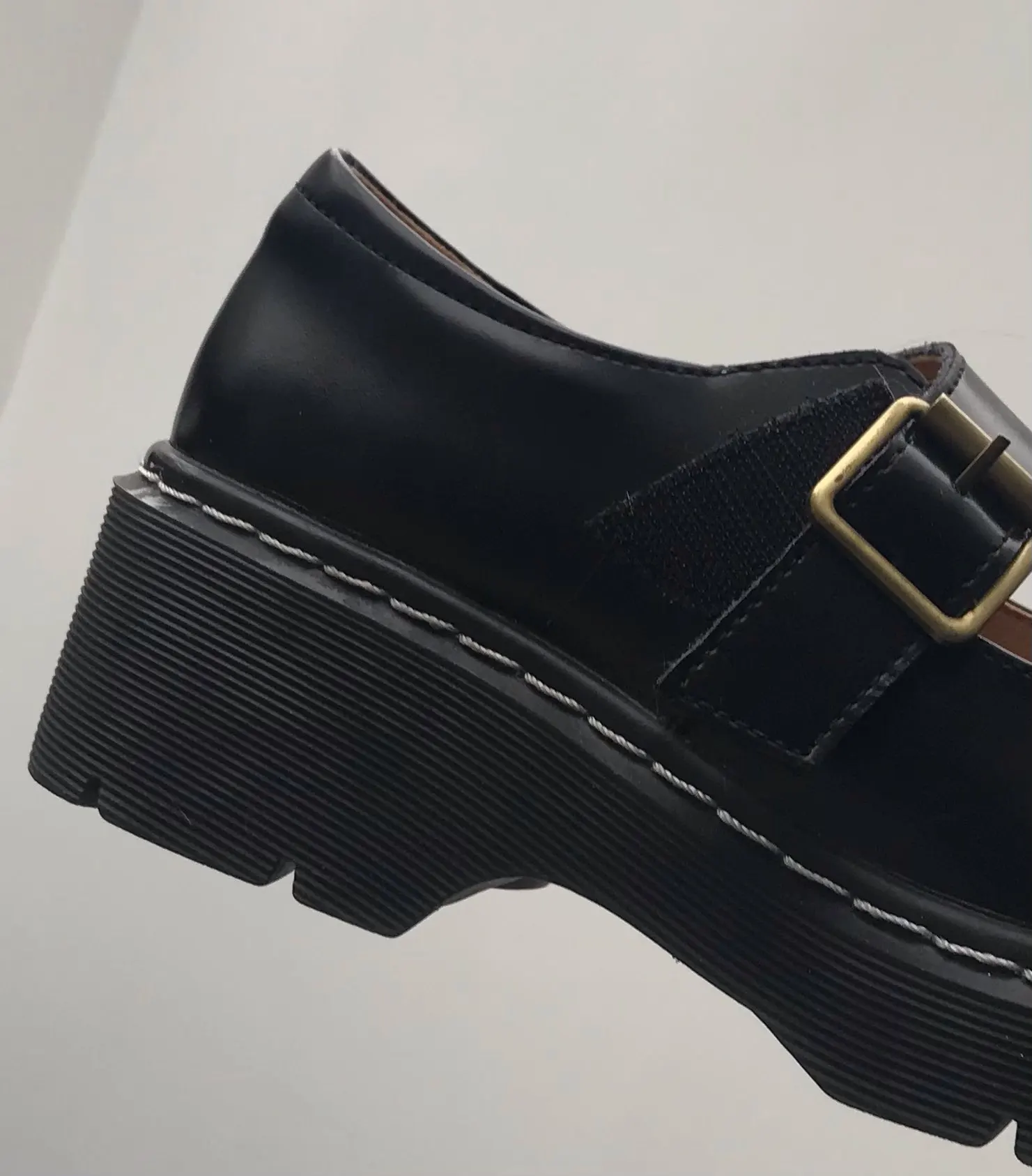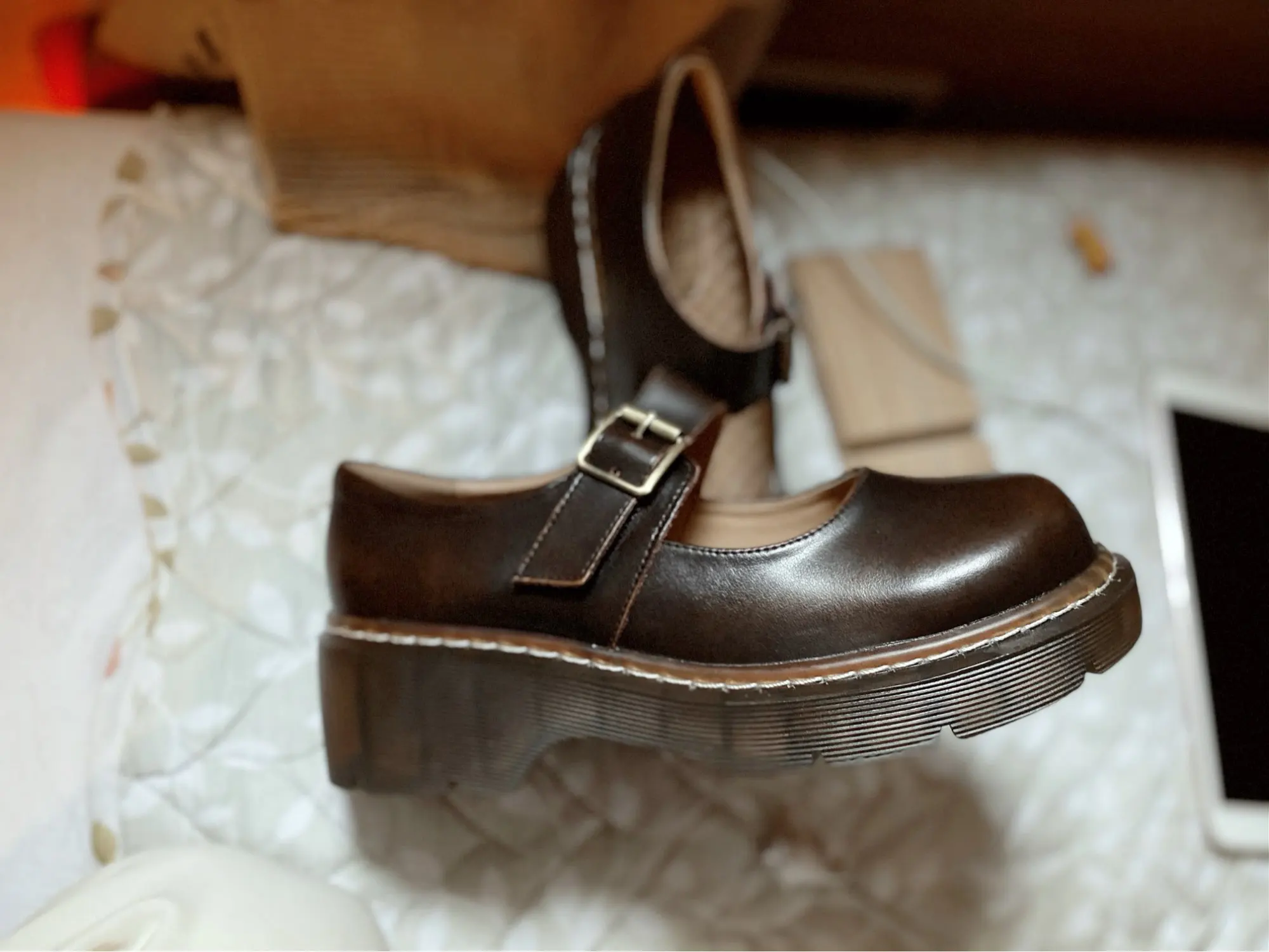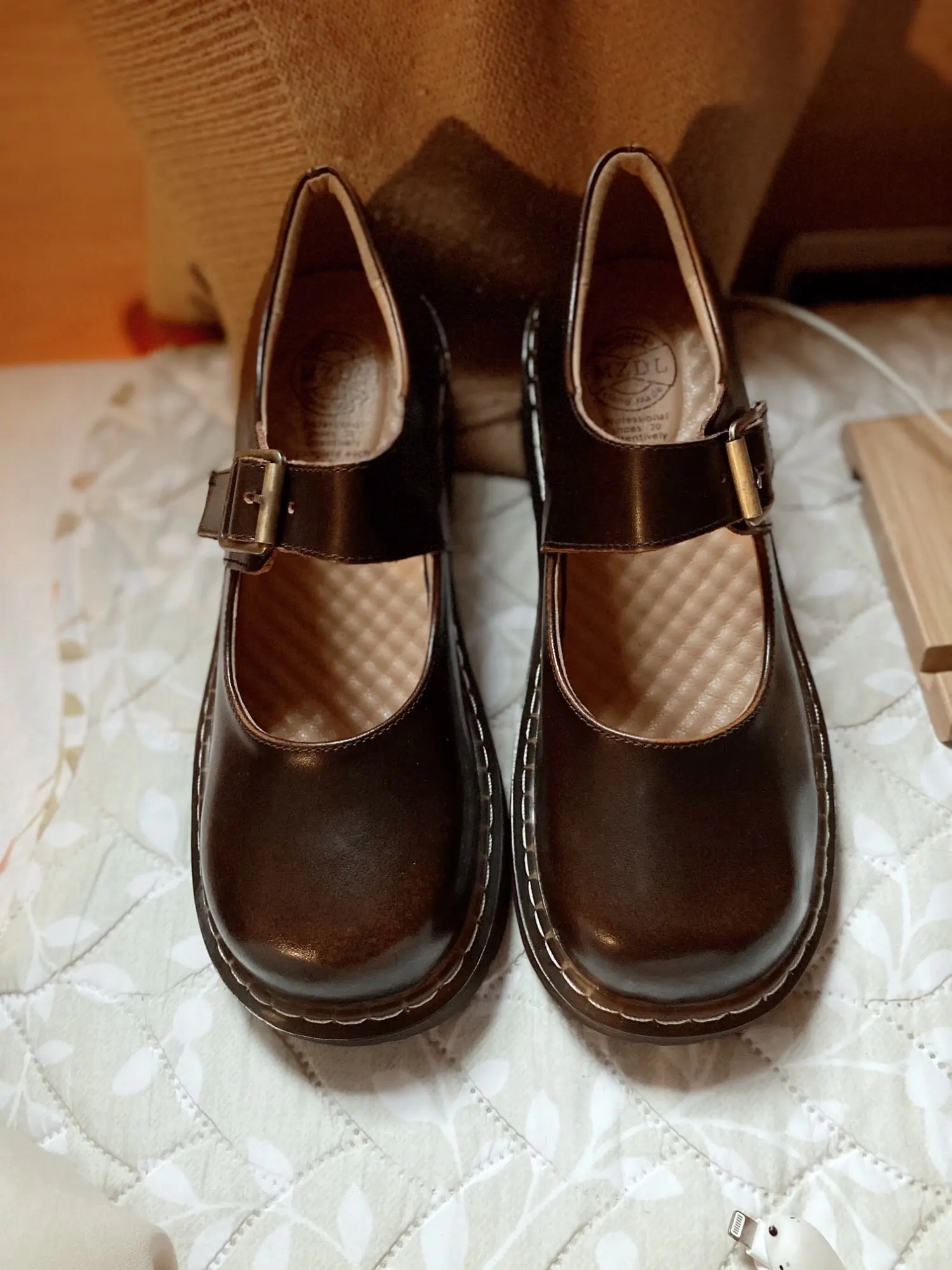 Женские кожаные туфли с пряжкой, повседневные, в японском стиле, на толстой подошве, 2019