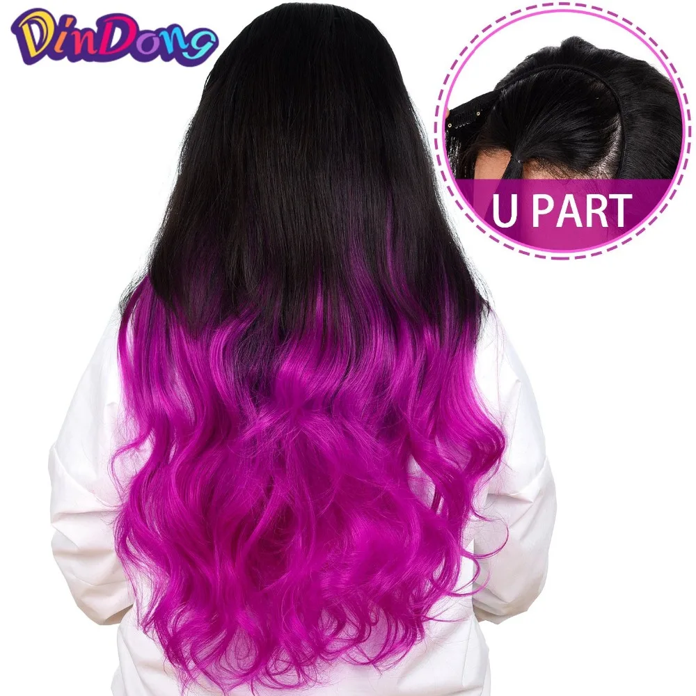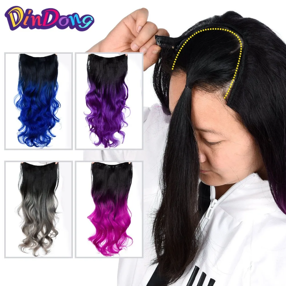 DinDong 26-дюймовые удлинители волос на зажиме 220 г, U-образные синтетические удлинители волос, накладные волосы для женщин, термостойкие волосы