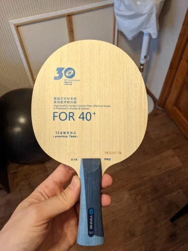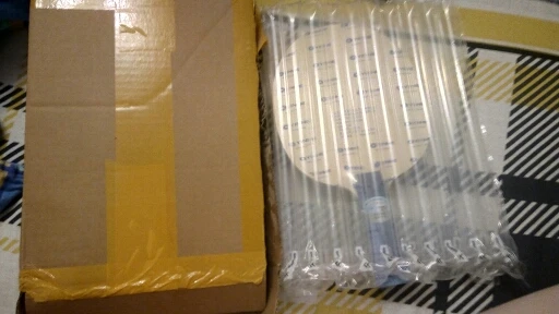Приехало за 11 дней. Из поднебесной. Вес 91,5 грамм. Шпон изумительного качества, как по однородности, так и по отделке поверхности. Ручка легла идеально, приятная максимально. Мне даже понравилась больше, чем батовские. (считаю, что у меня средних ращмеров рука и пальцы). Набивание - звонкое, довольно высокое, чистый ОФФ, вибрация в меру. Игровое пятно не скажу, что прям большое, но слегка больше, чем на примораце. края звучат иначе, но не валенкообразно. Толщина весла от 5.8 до 6 мм. в подавляющем большинстве мест 5.9мм. И немного гавнеца. Лопасть не идеально плоская, немного выпуклая с одной стороны, вогнутая ямой с противоположной соответственно. выпуклость-вогнутость поряда 0.15 - 0.2 мм. При этом с обеих сторон чёткий эффект прилипания к ровной поверхности. вогнутость очень симметрична относительно вытянутой оси весла. Лично мне двояко - из-за перфекционищма зотелось бы плоскость, но знаю, что такая вогнутость с правой ст-ны даст мне чуть больше комфорта.