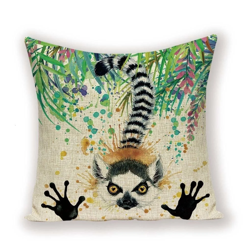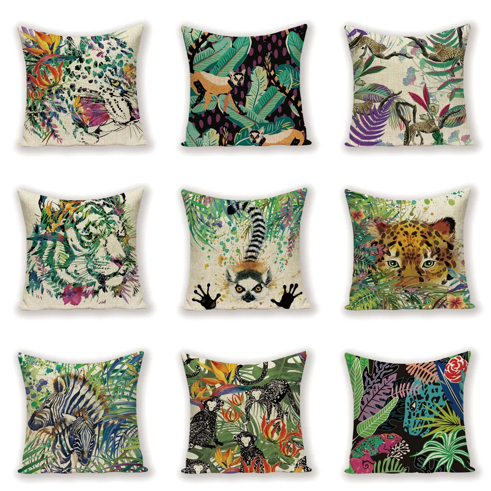 Мультяшный чехол для подушки с изображением животных тигра, подушки для гостиной, винтажная декоративная наволочка, потертая шикарная льняная наволочка 45*45 Kissen